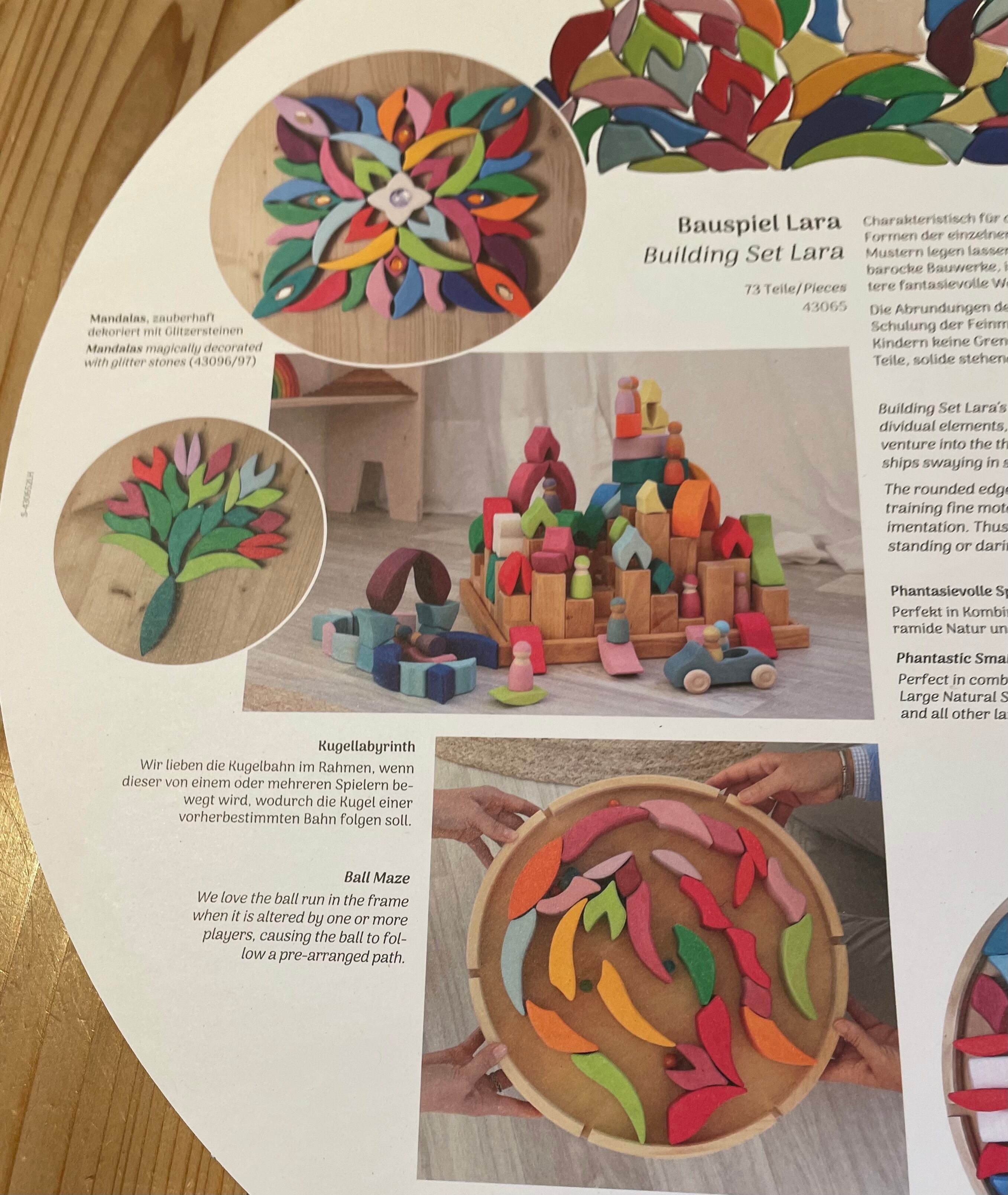 他の積み木と組み合わせて積んだり、並べたり、パズルのように木枠に並べたり。