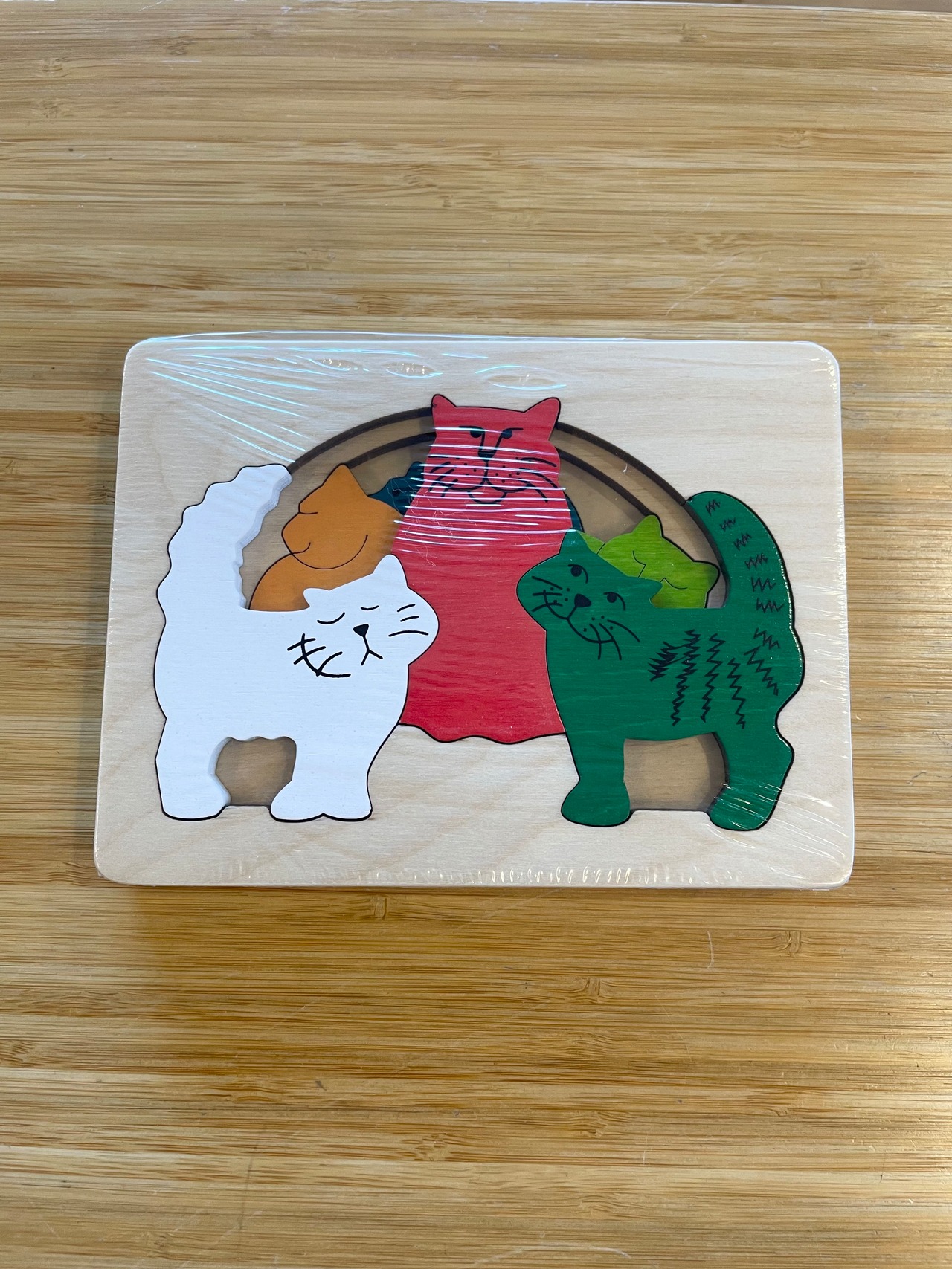 5種の異なるモチーフを1枚板で遊べるように作られたピープパズル。少しずつピース数が増えていく3重パズル。異なる上下2層の絵柄が1枚のボードにセットされた2重パズル。など、ちいさな子ども(2歳ごろ)から、小学生の子どもまでそれぞれの年齢や興味に応じて楽しめるように作られています。