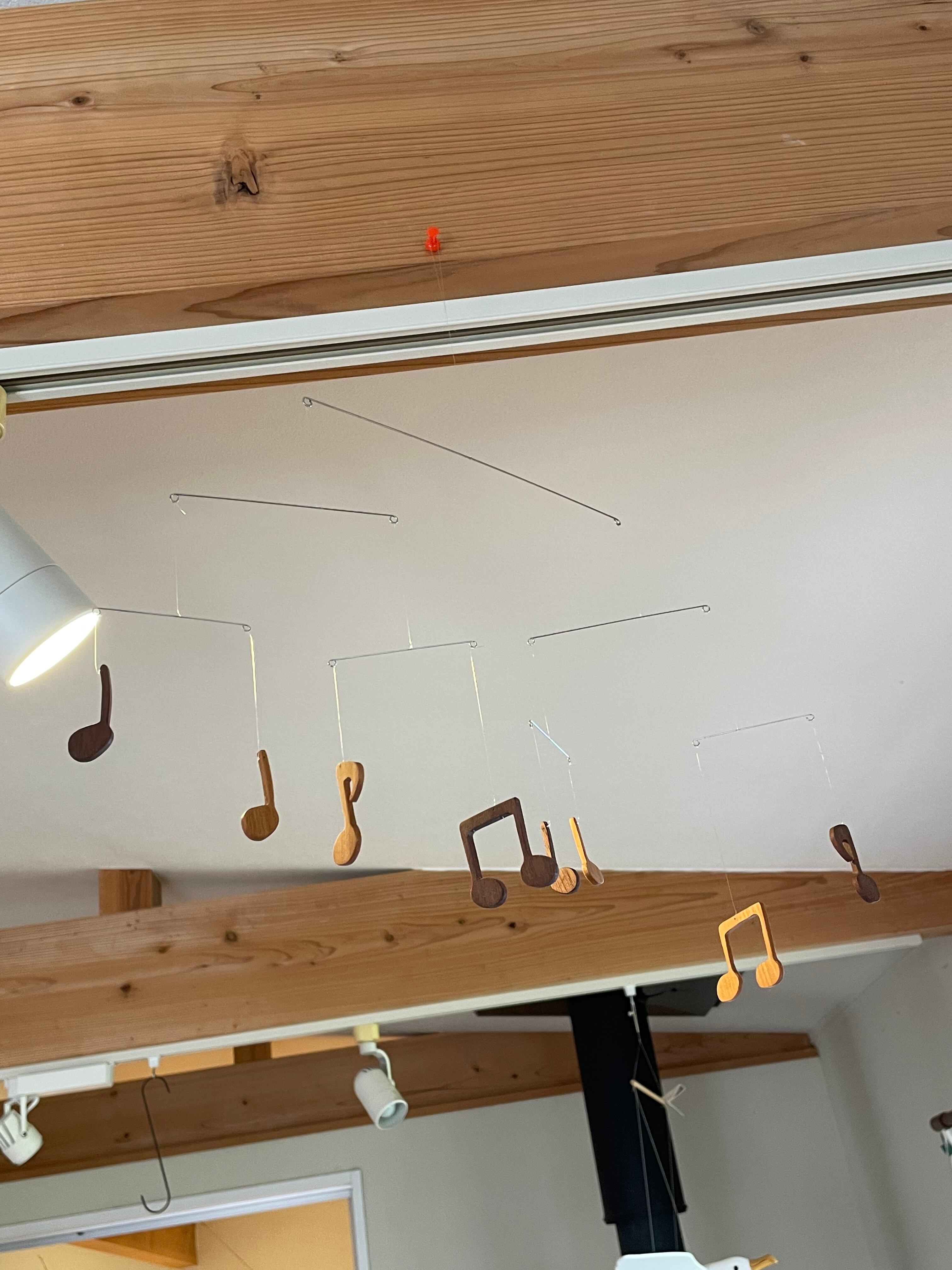 山口県宇部市の木工作家「木工房 空cuu 」さんの『モビール 音符』です。