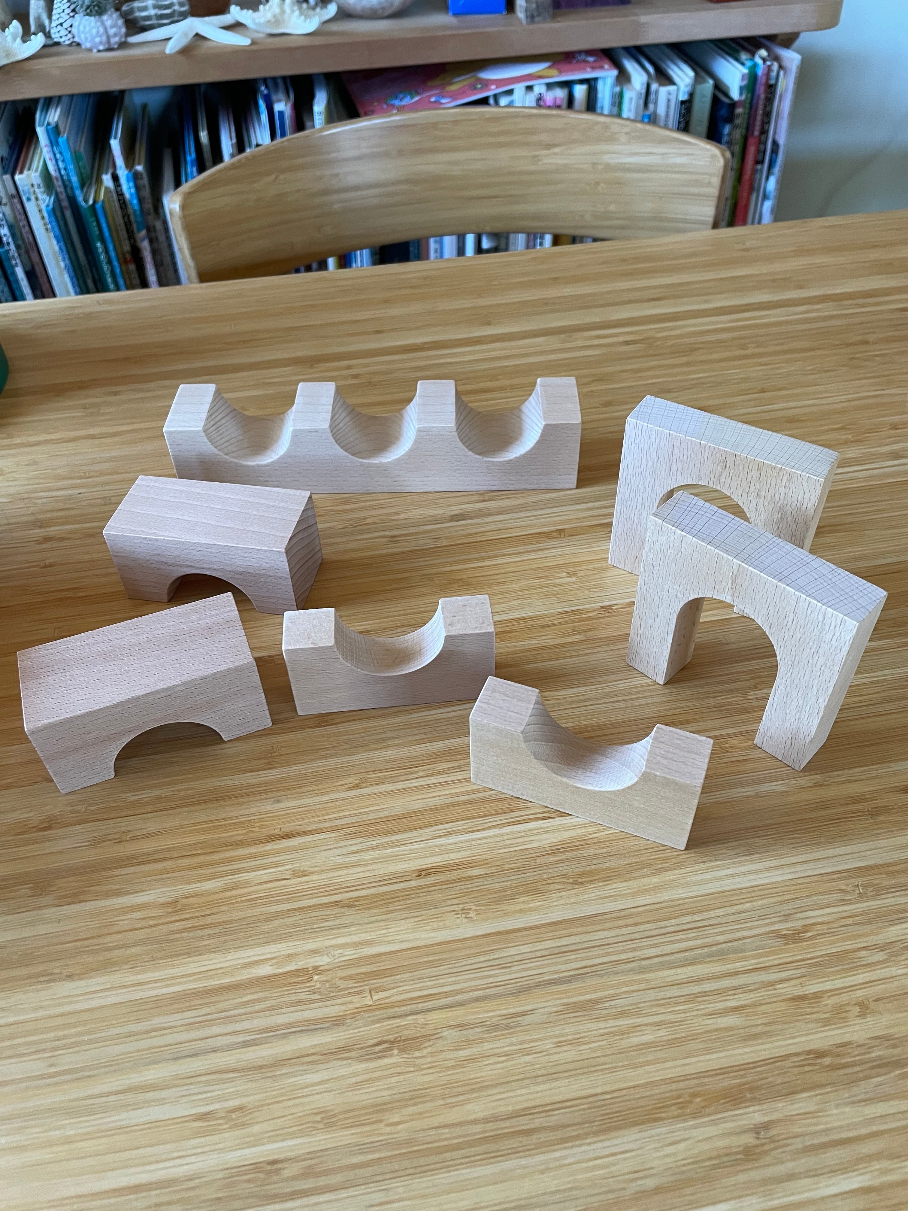早田材木店さん(小さな大工さん)のアーチ型積み木7個セットです。