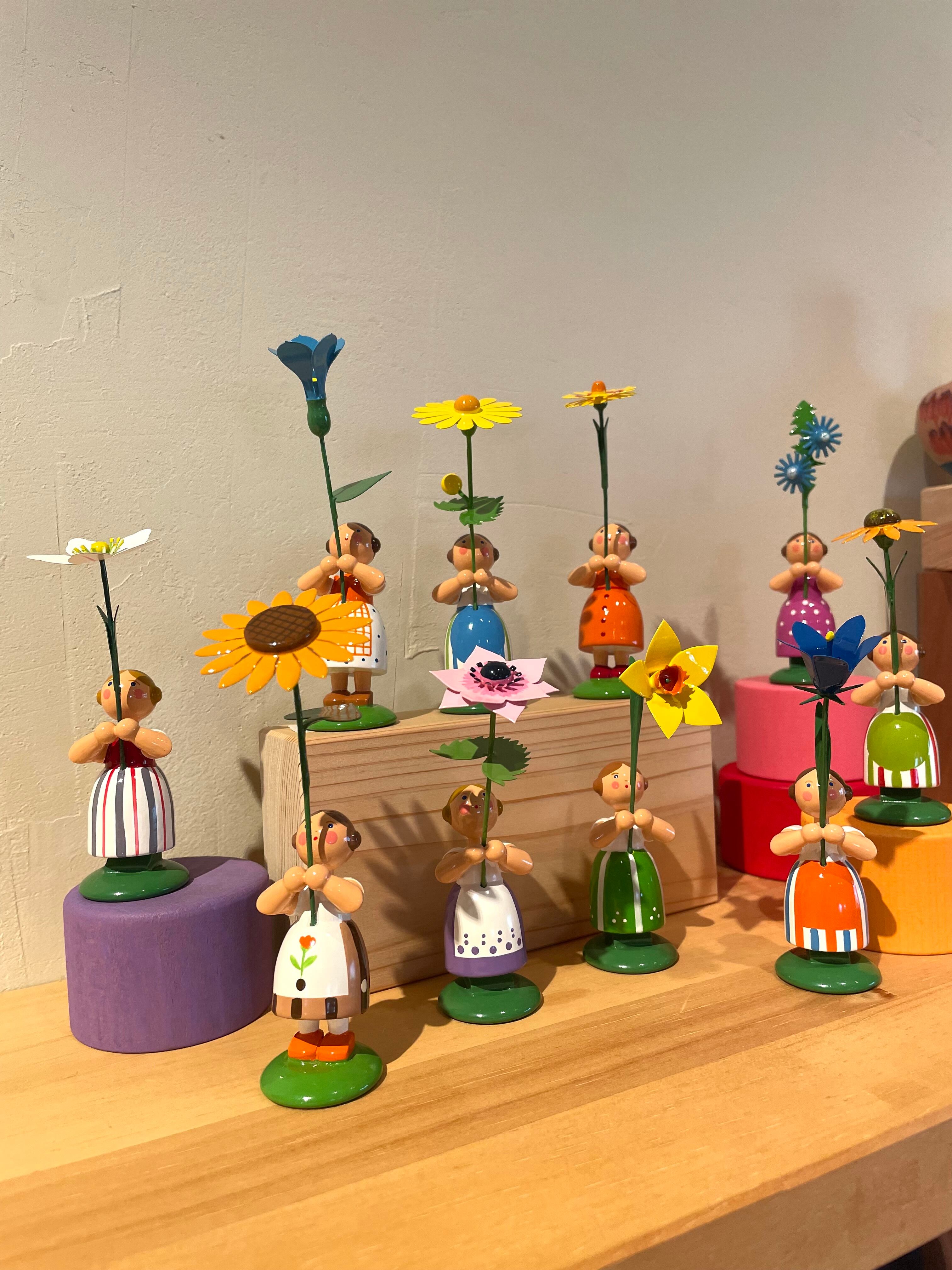 掲げたお花を見つめているデザインも、小さな子どものしぐさを連想させます。