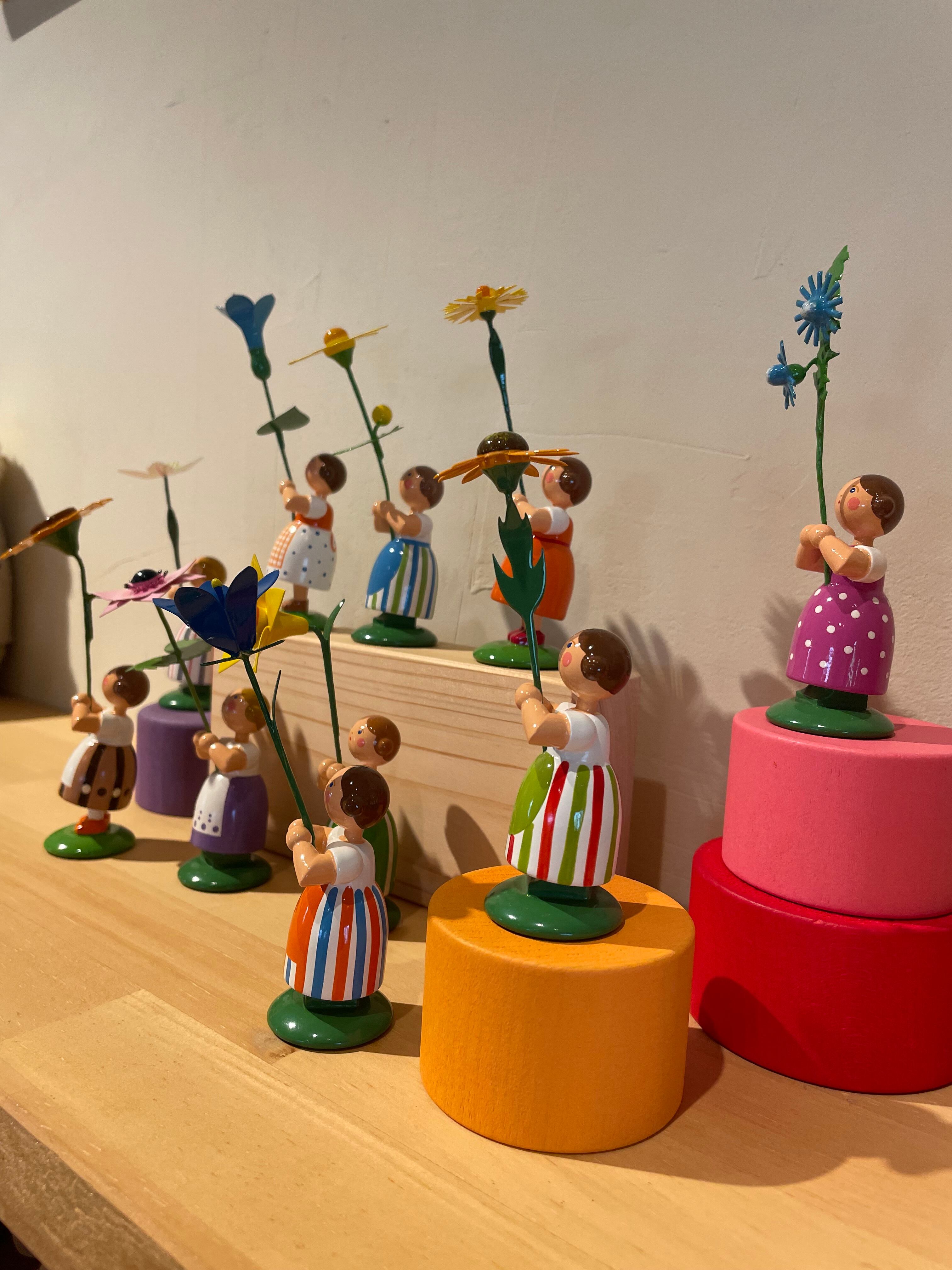 丁寧に塗り重ねられた塗装が美しい小さな人形です。