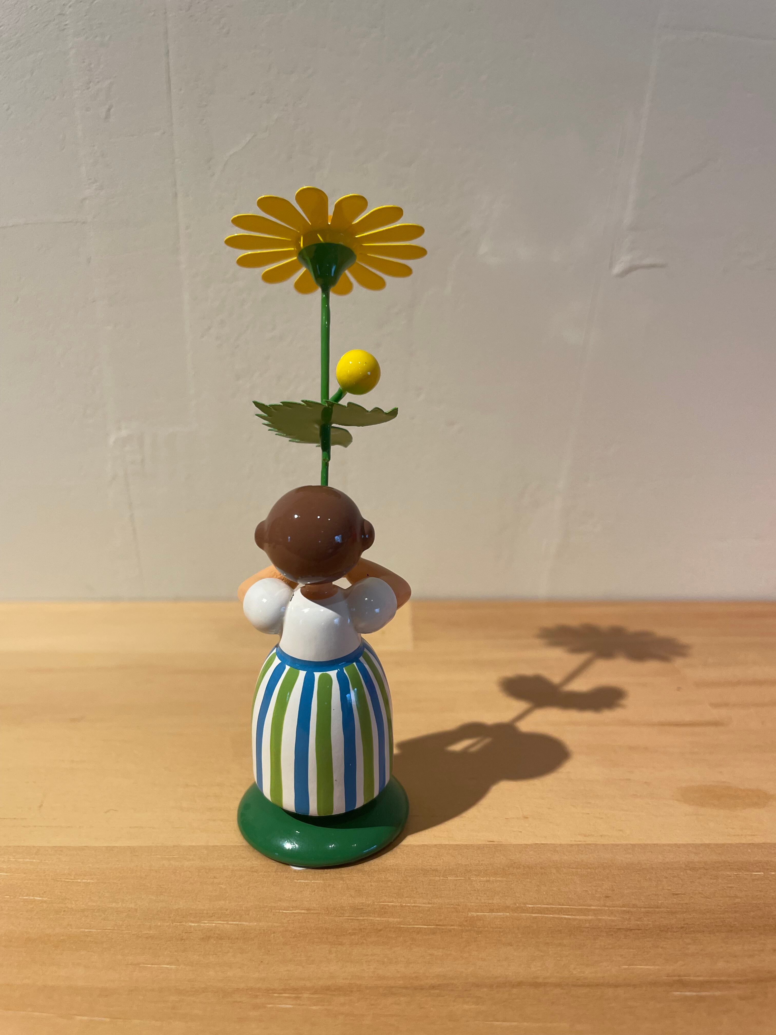 掲げたお花を見つめているデザインも、小さな子どものしぐさを連想させます。