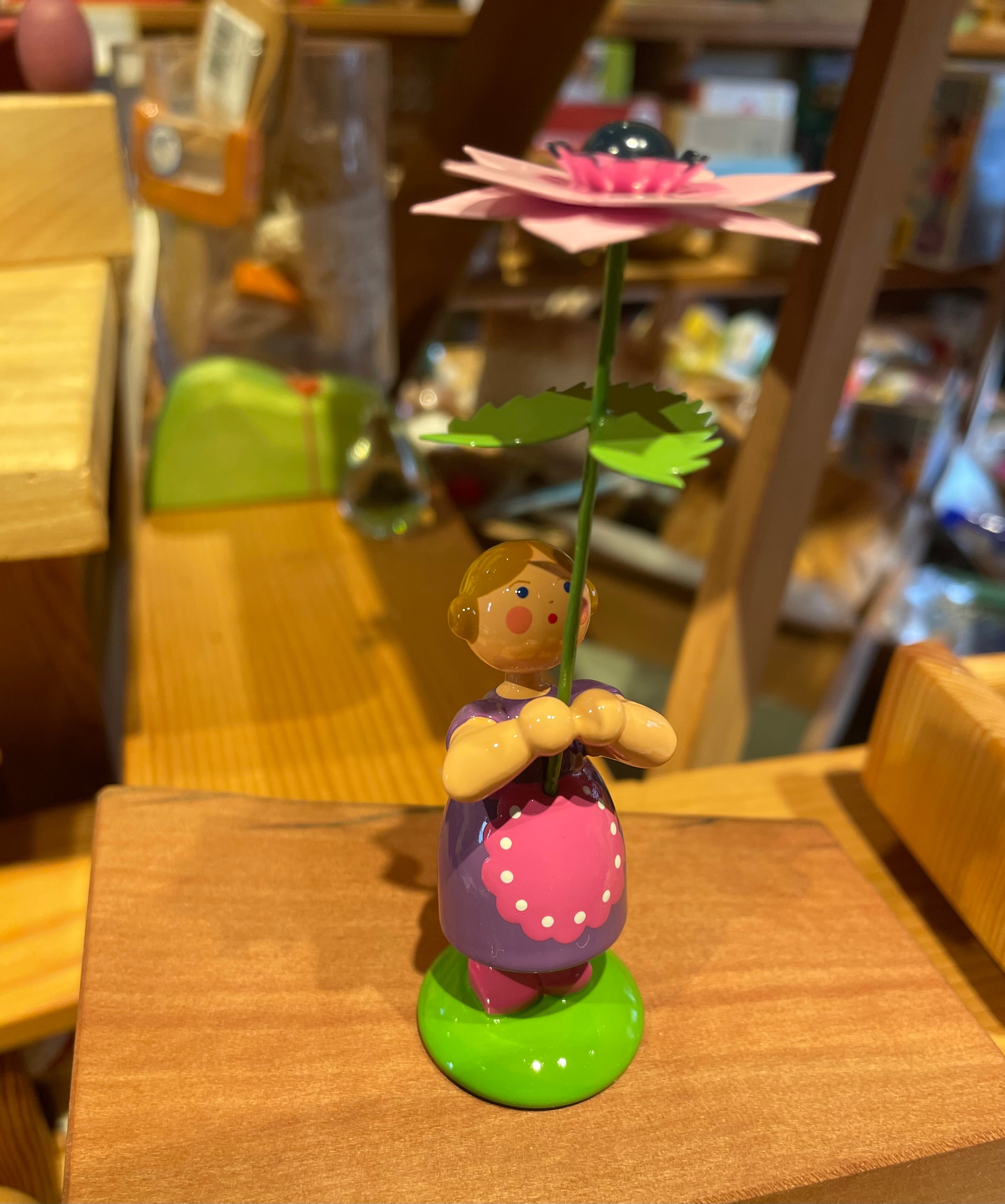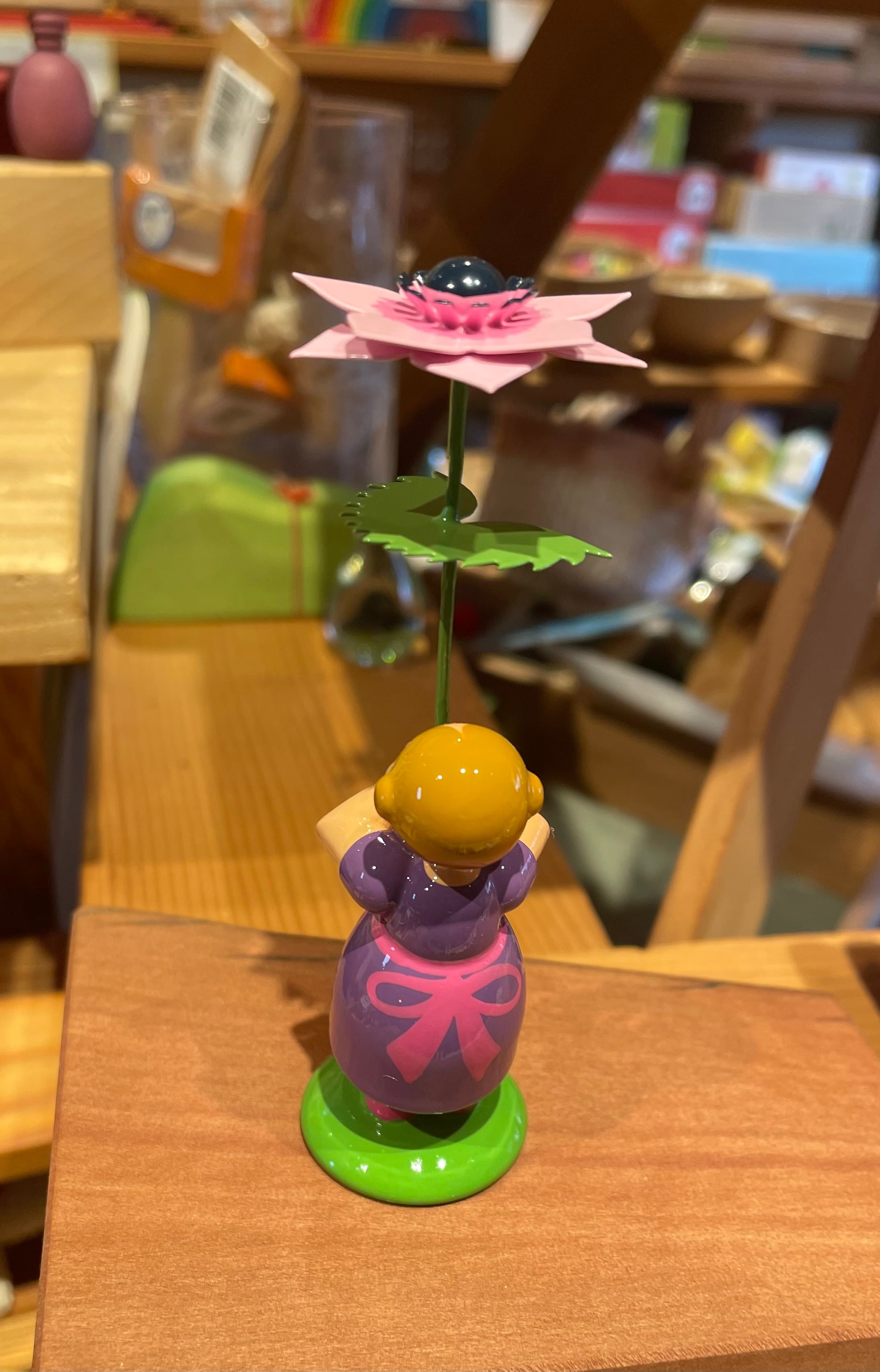 掲げたお花を見つめているデザインも、小さな子どものしぐさを連想させます。