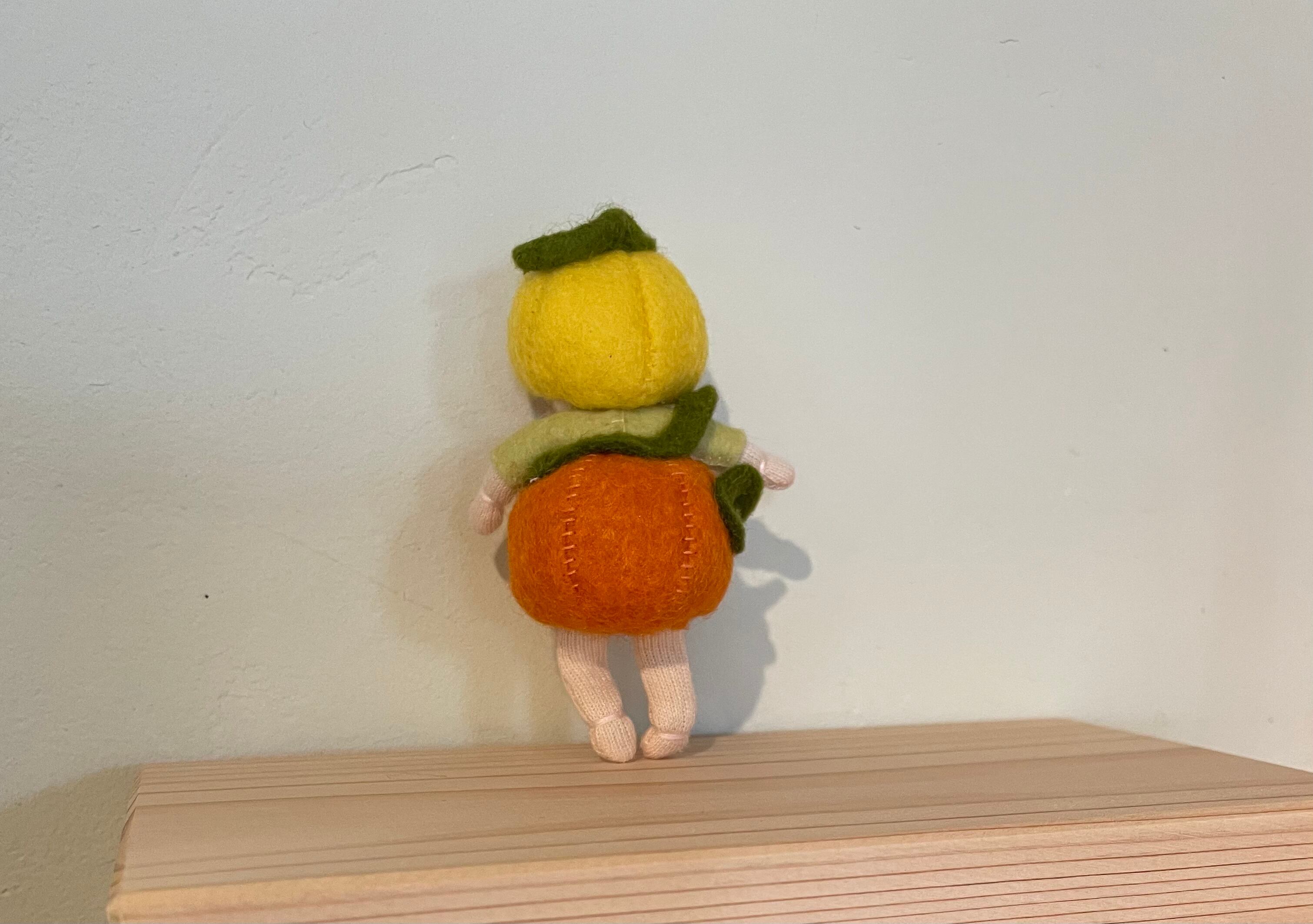 フェルトで作られた約7,5センチの小さな赤ちゃんです。