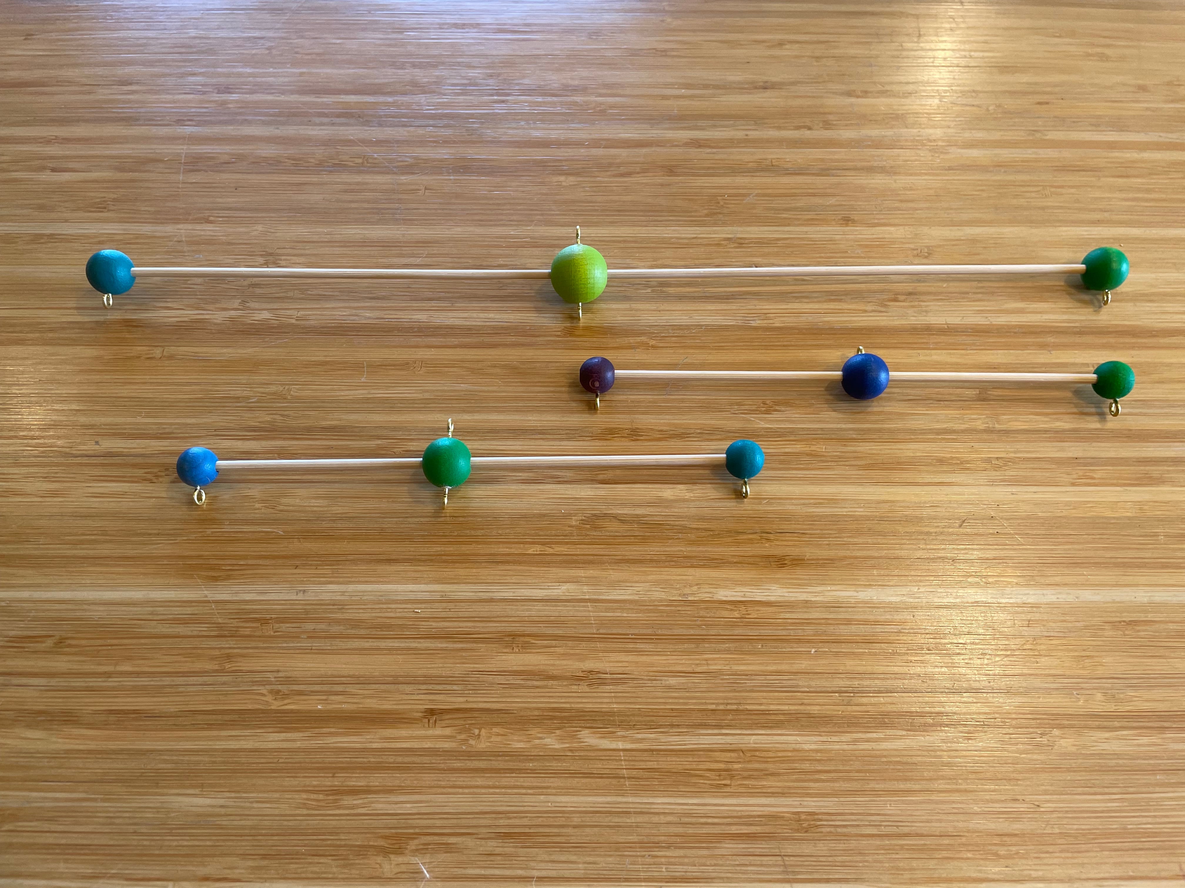 吊り下げるもののバランスがとれるように、棒の真ん中の球は動かすことができます。