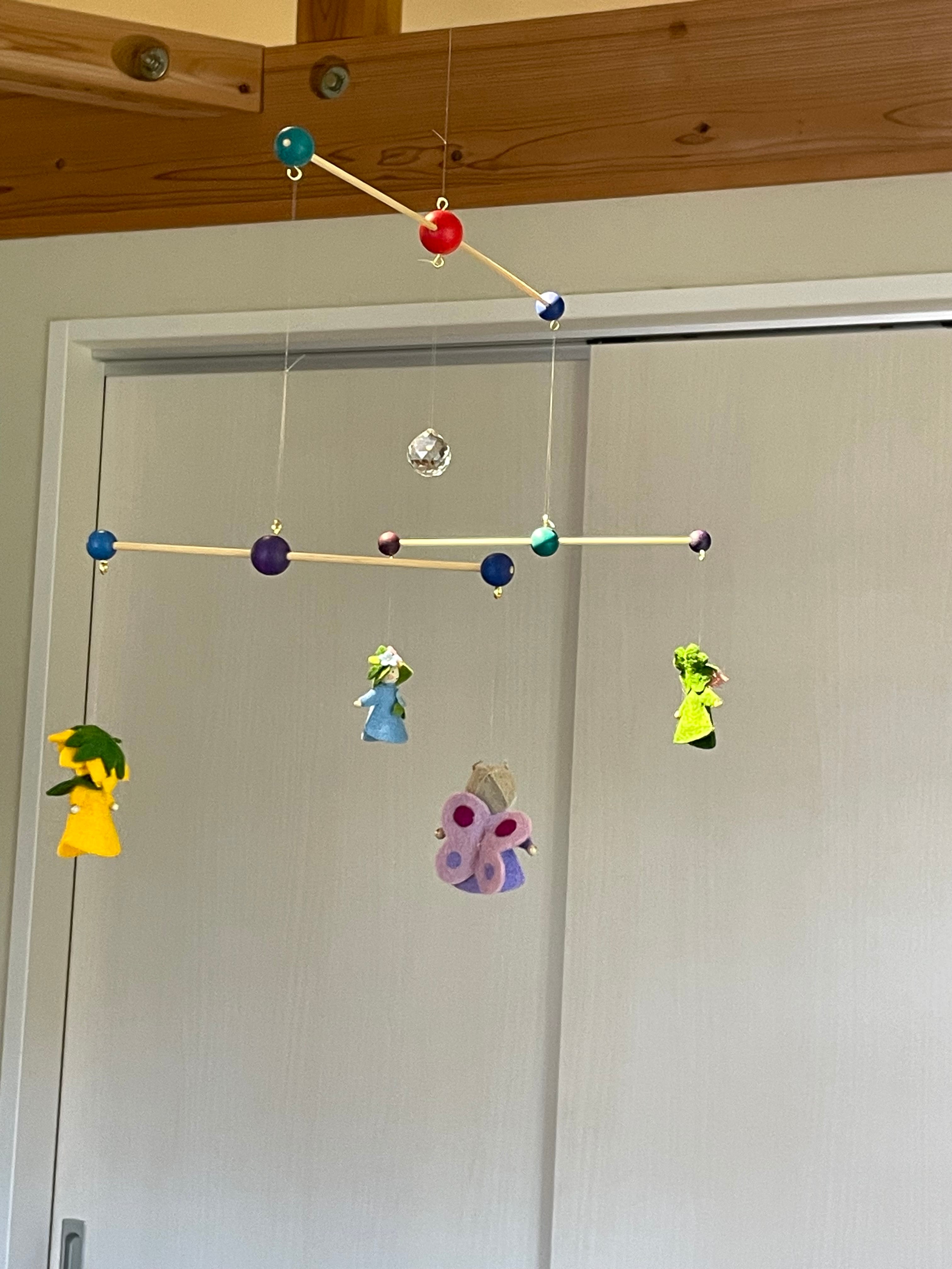 お手持ちのアンブロシウスフェアリーやオーナメントなどを吊り下げて、自分でお好みのモビールを作ることができます。