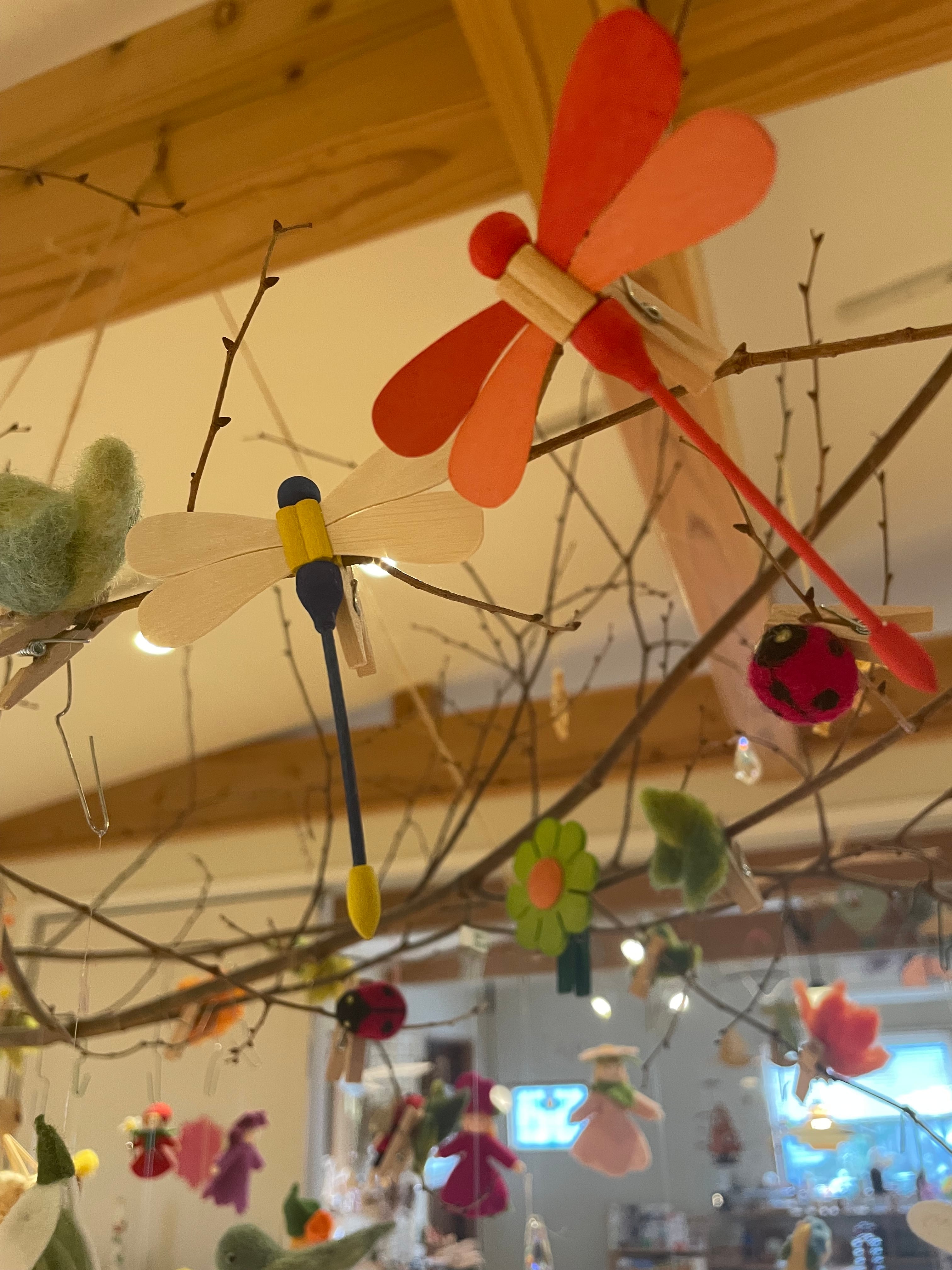 天井から枝をつるしてクリップで挟んだり、大きめの花瓶に枝を差し入れてクリップではさんだり…。いろいろに飾ってみてください。