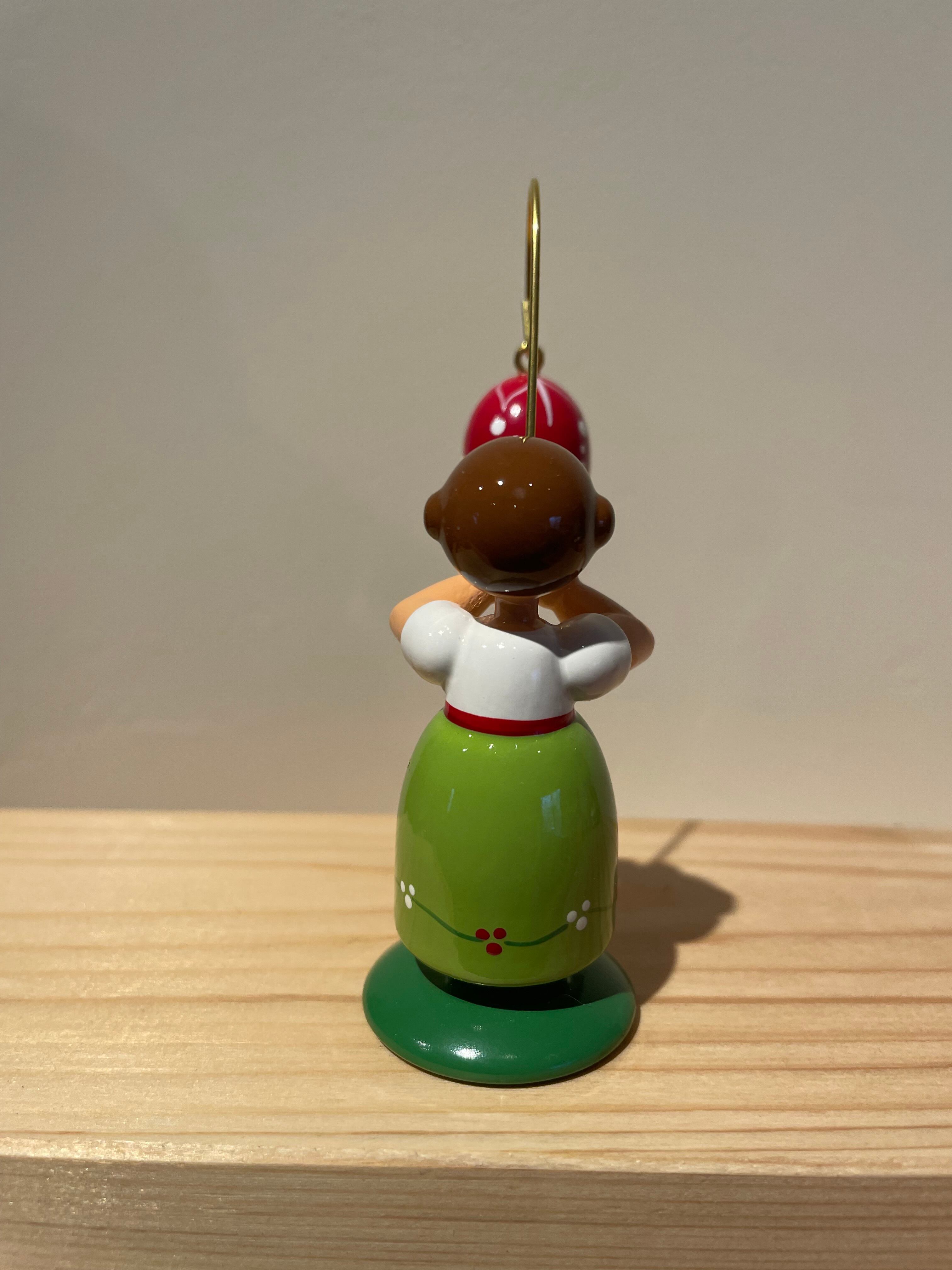 丁寧に塗り重ねられた塗装が美しい小さな人形です。
