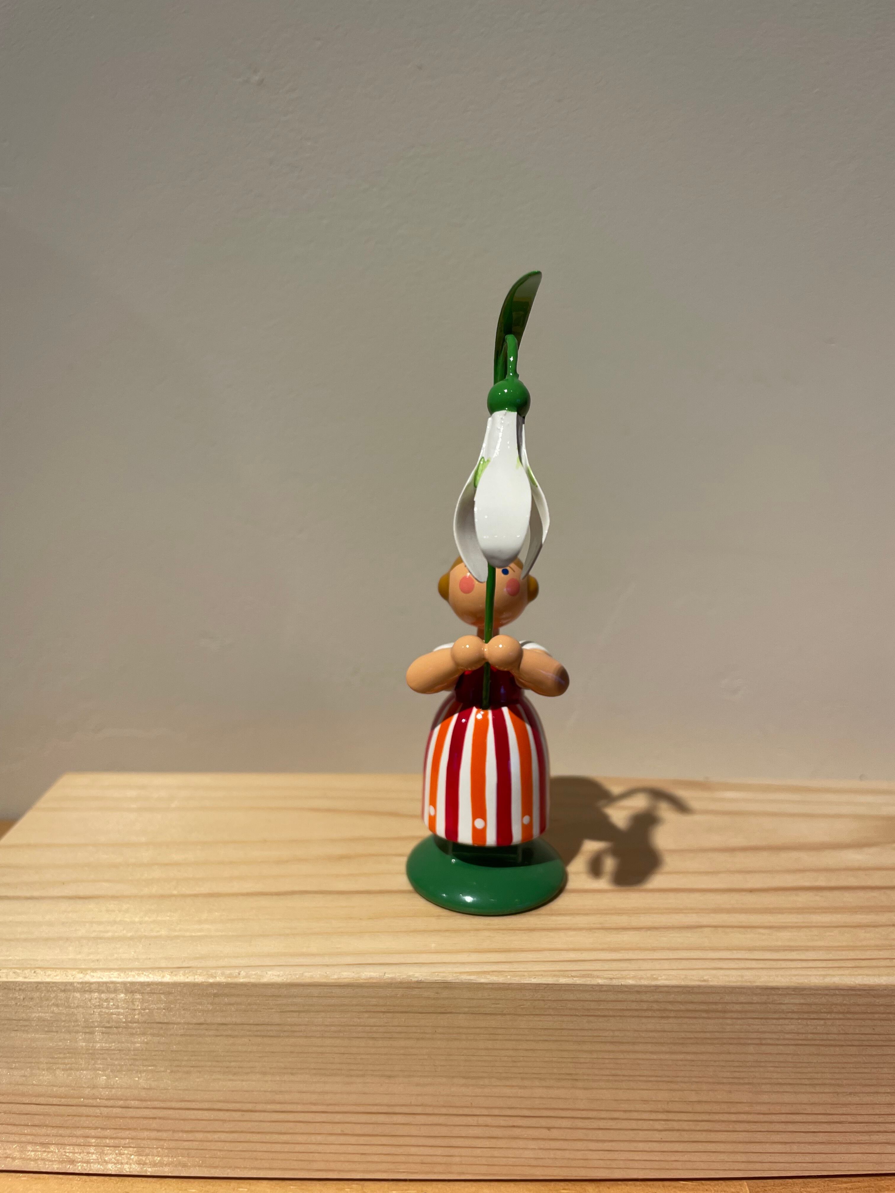 丁寧に塗り重ねられた塗装が美しい小さな人形です。