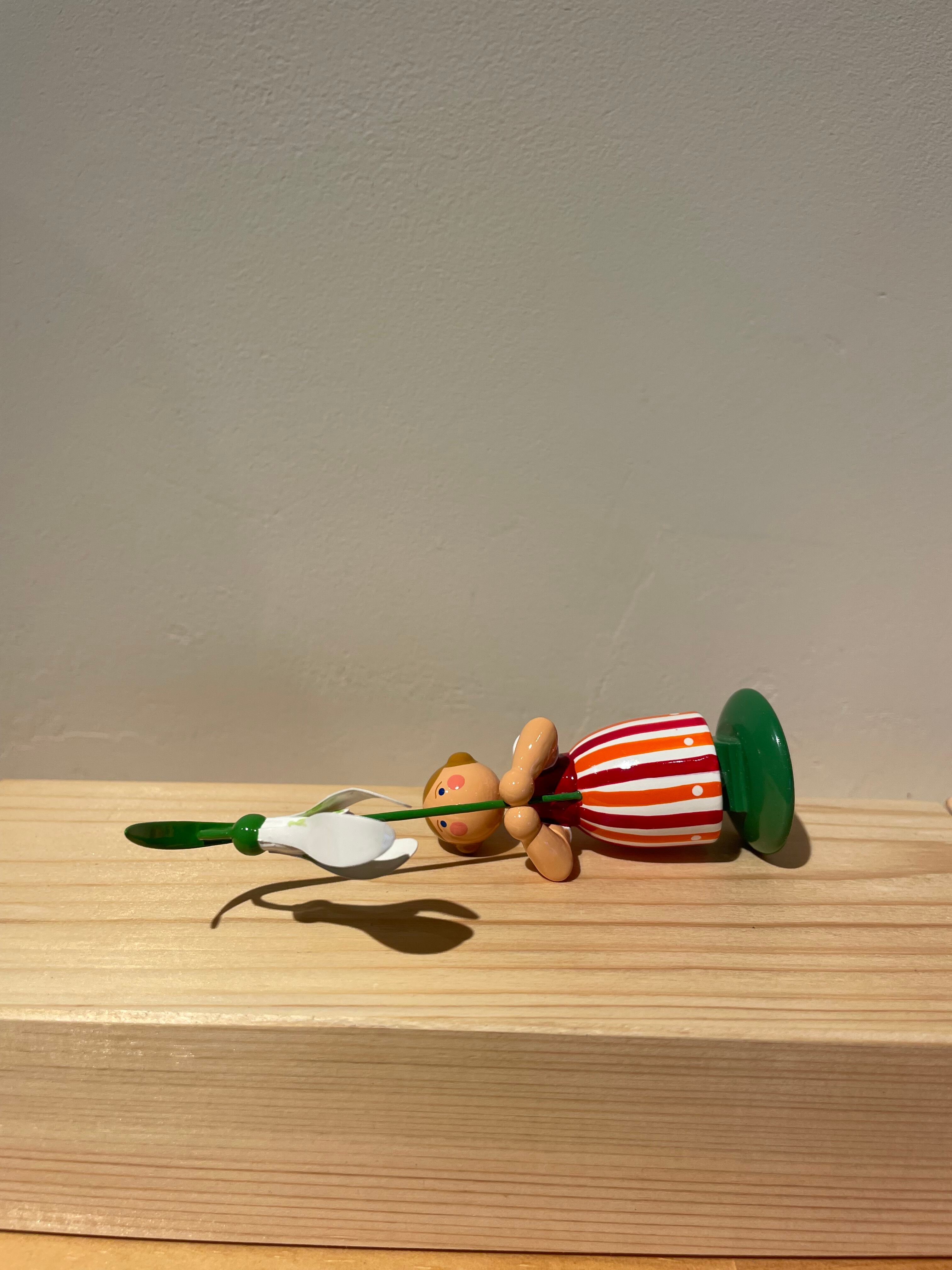 掲げたお花を見つめているデザインも、小さな子どものしぐさを連想させます。