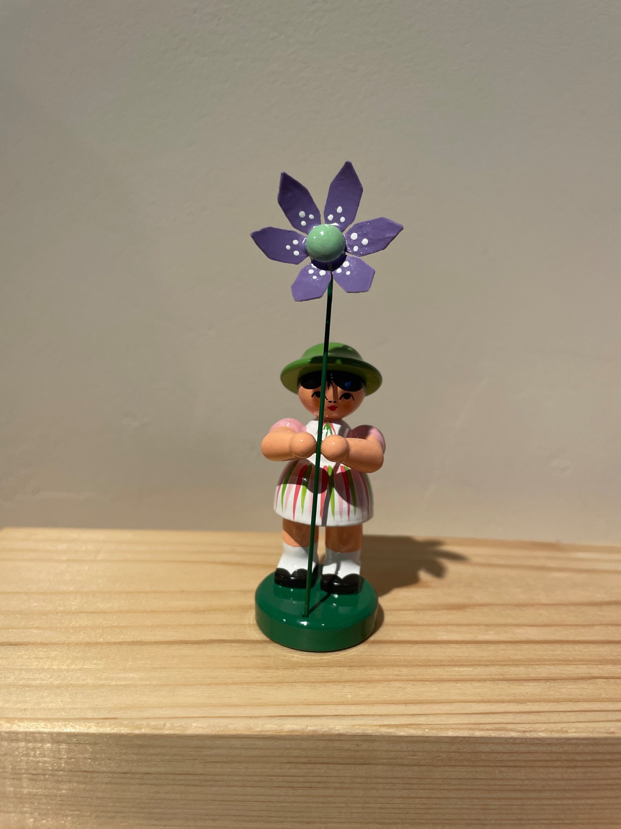 丁寧に塗り重ねられた塗装が美しい小さな人形です。