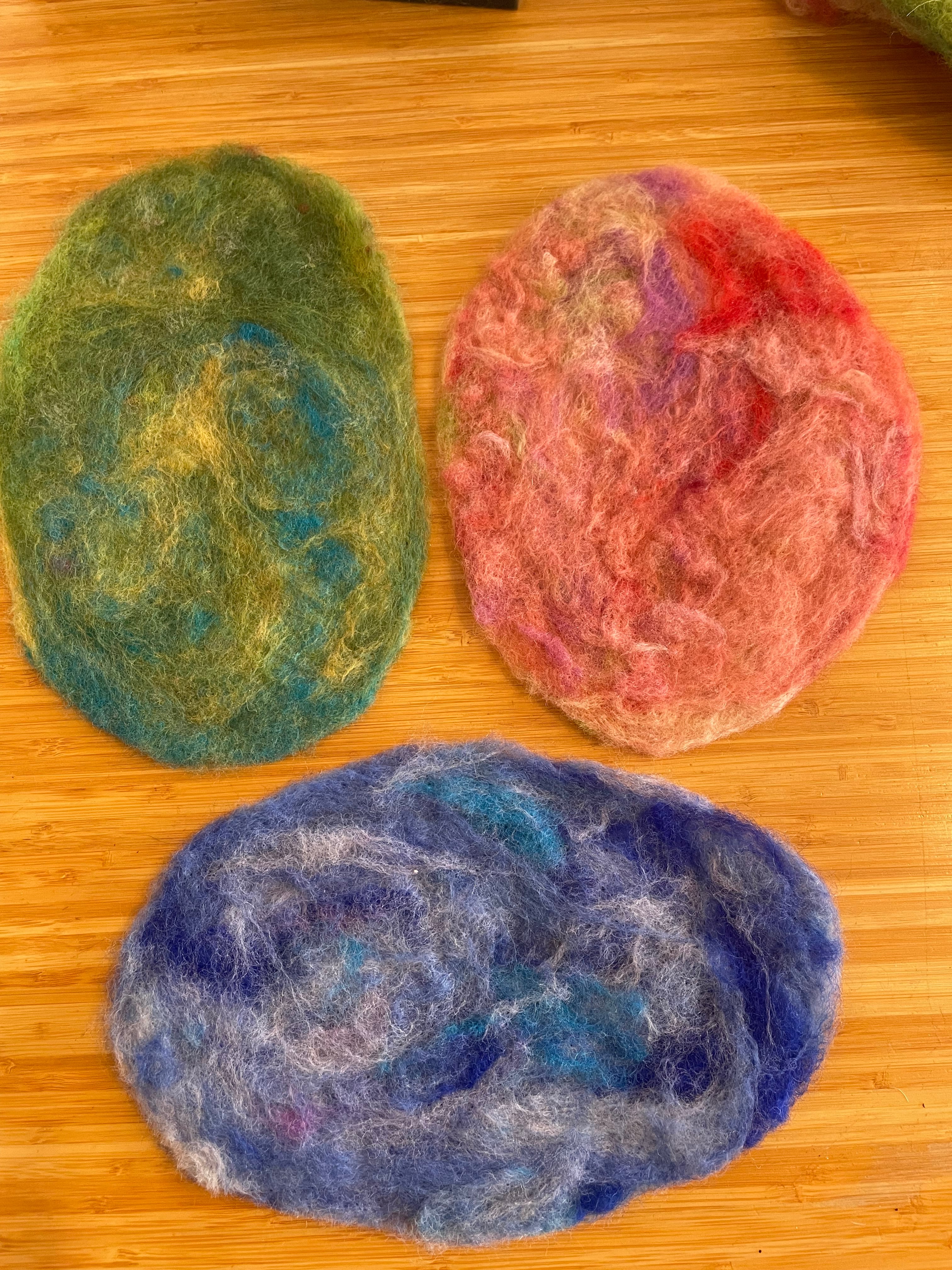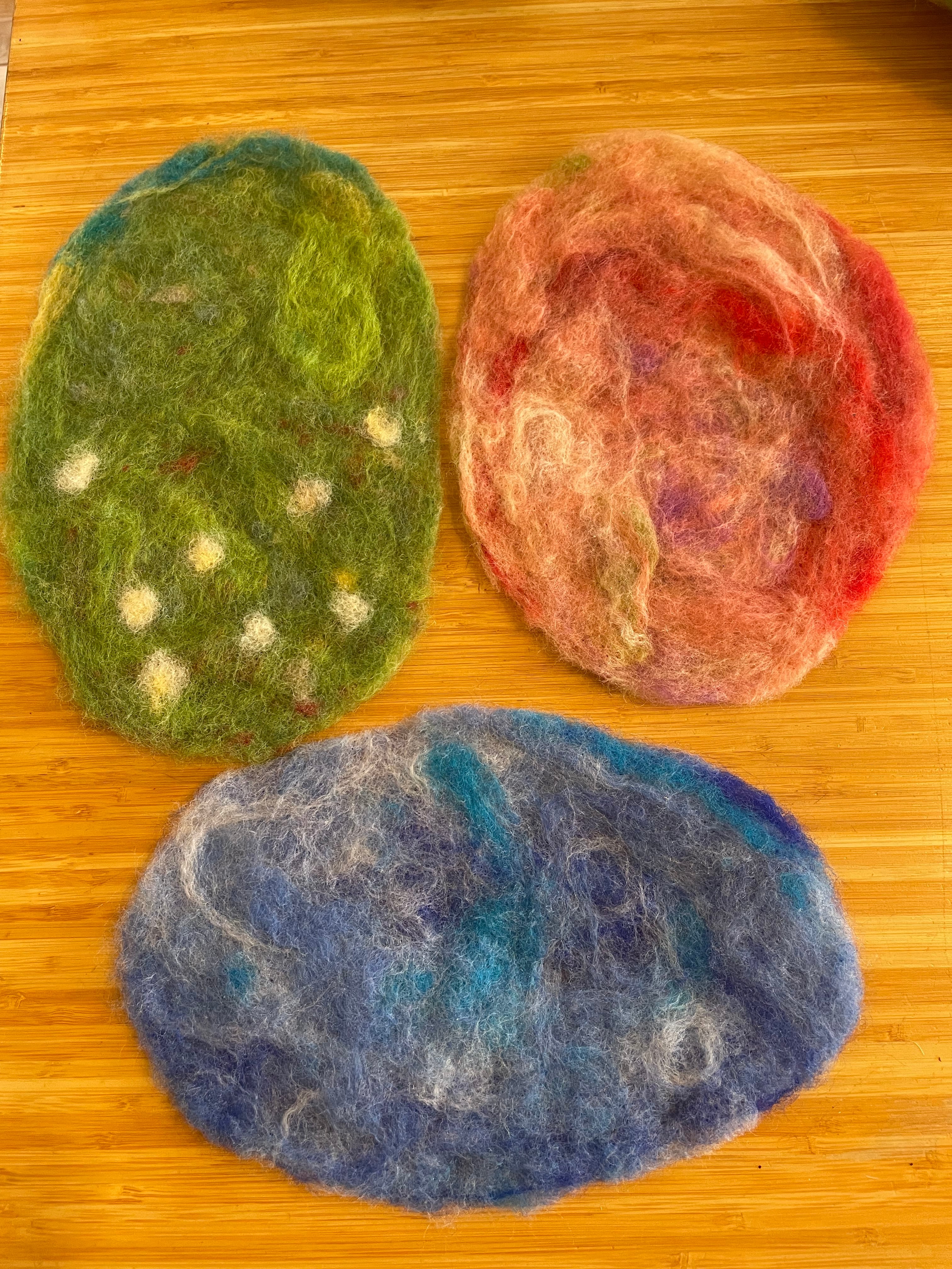 手作りの羊毛マット3枚セットです。
