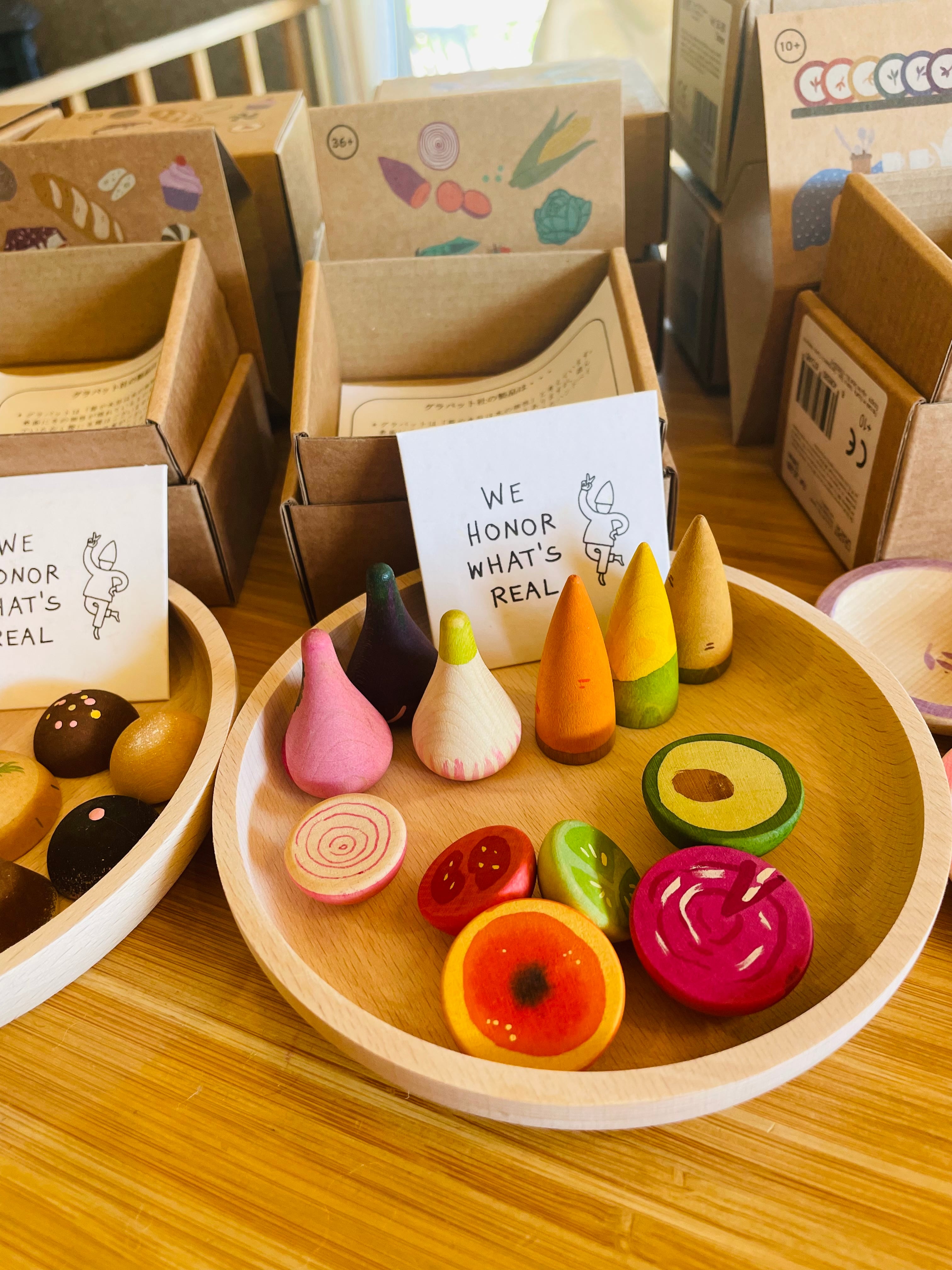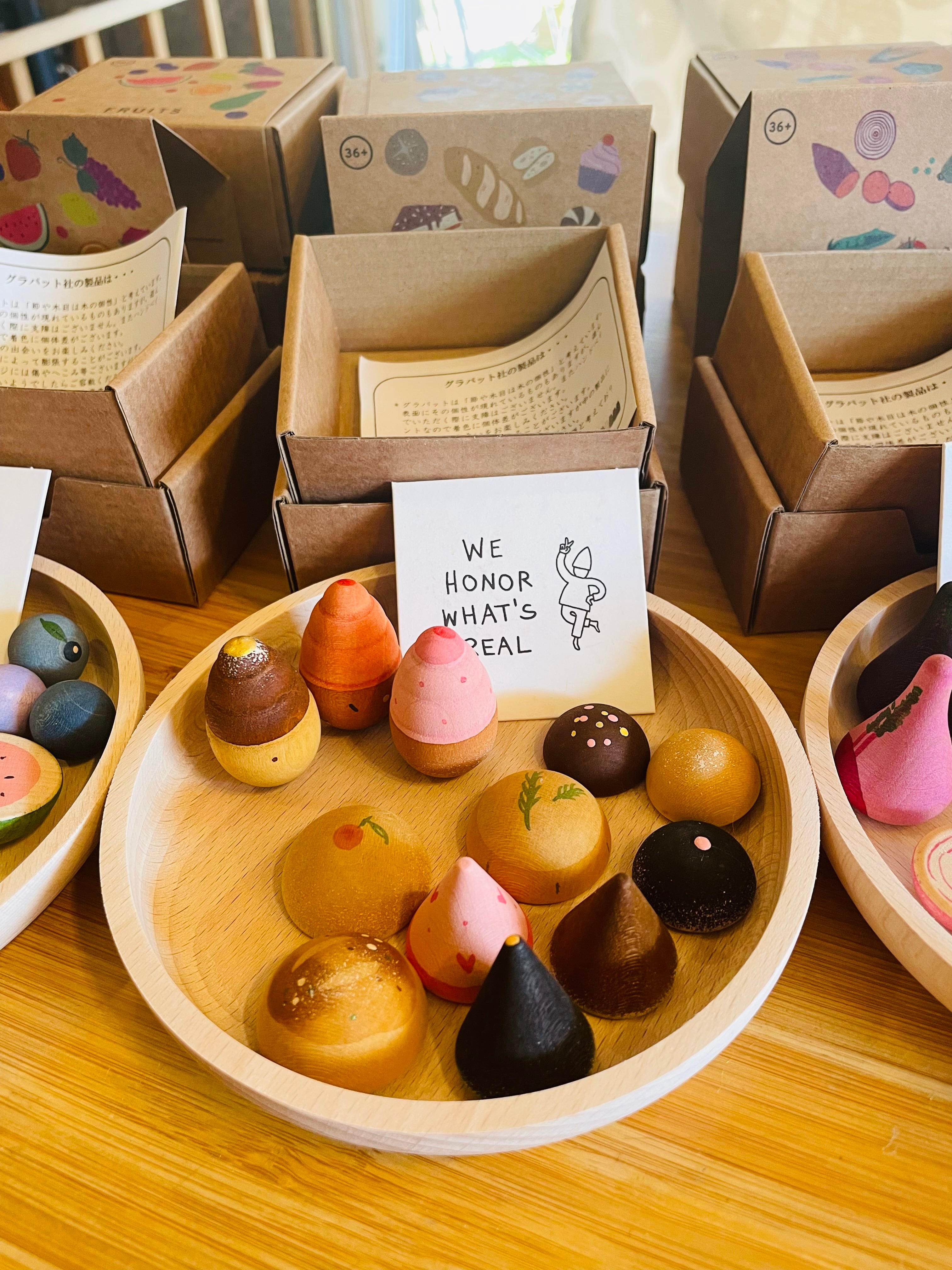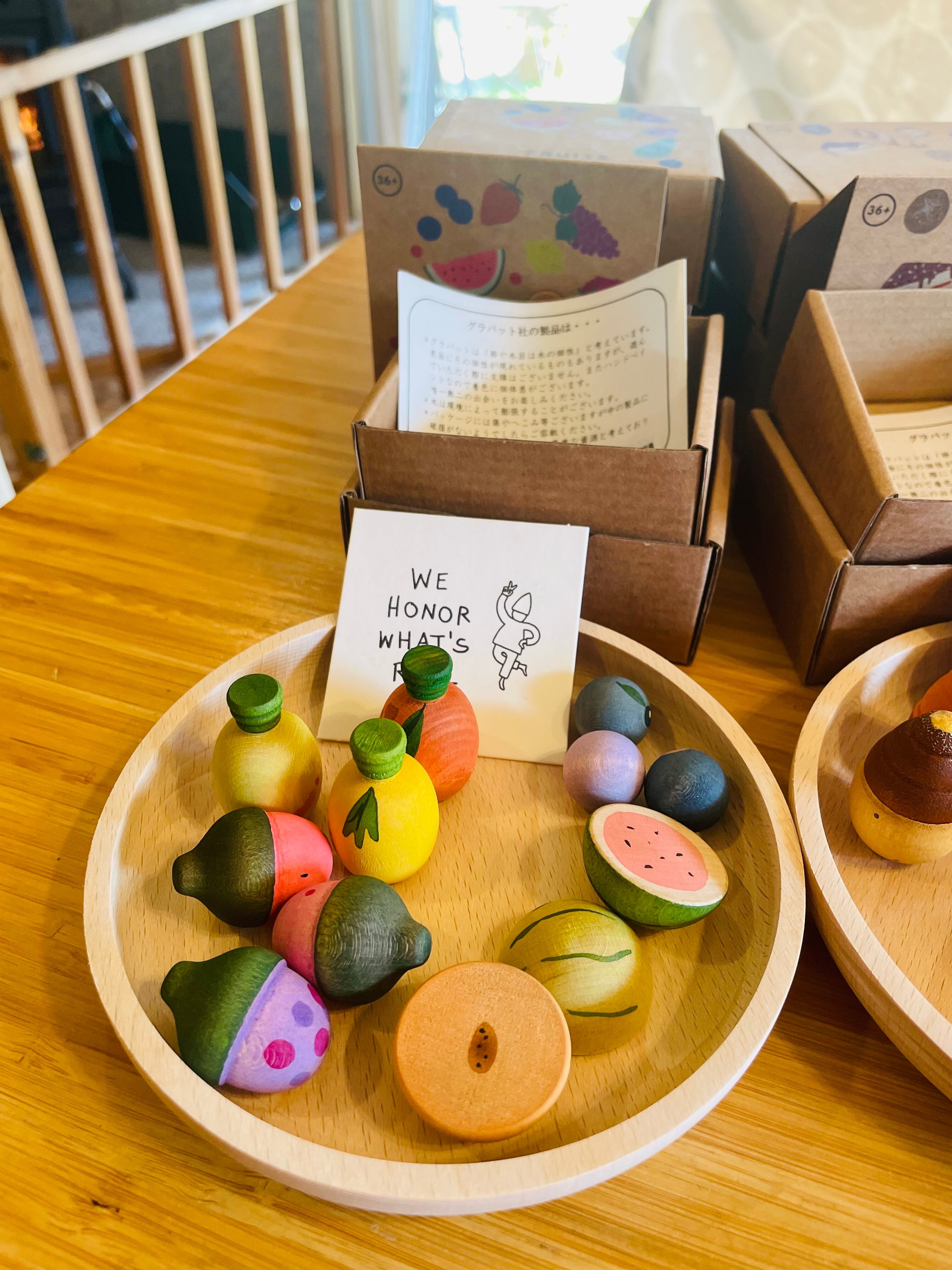 少し深さがあるので、おままごとの食材、グラパットのマンダラや新商品のミニ・フルーツ、みに・ベジー、ミニ・ベイクなどもたくさん盛り付けられます。