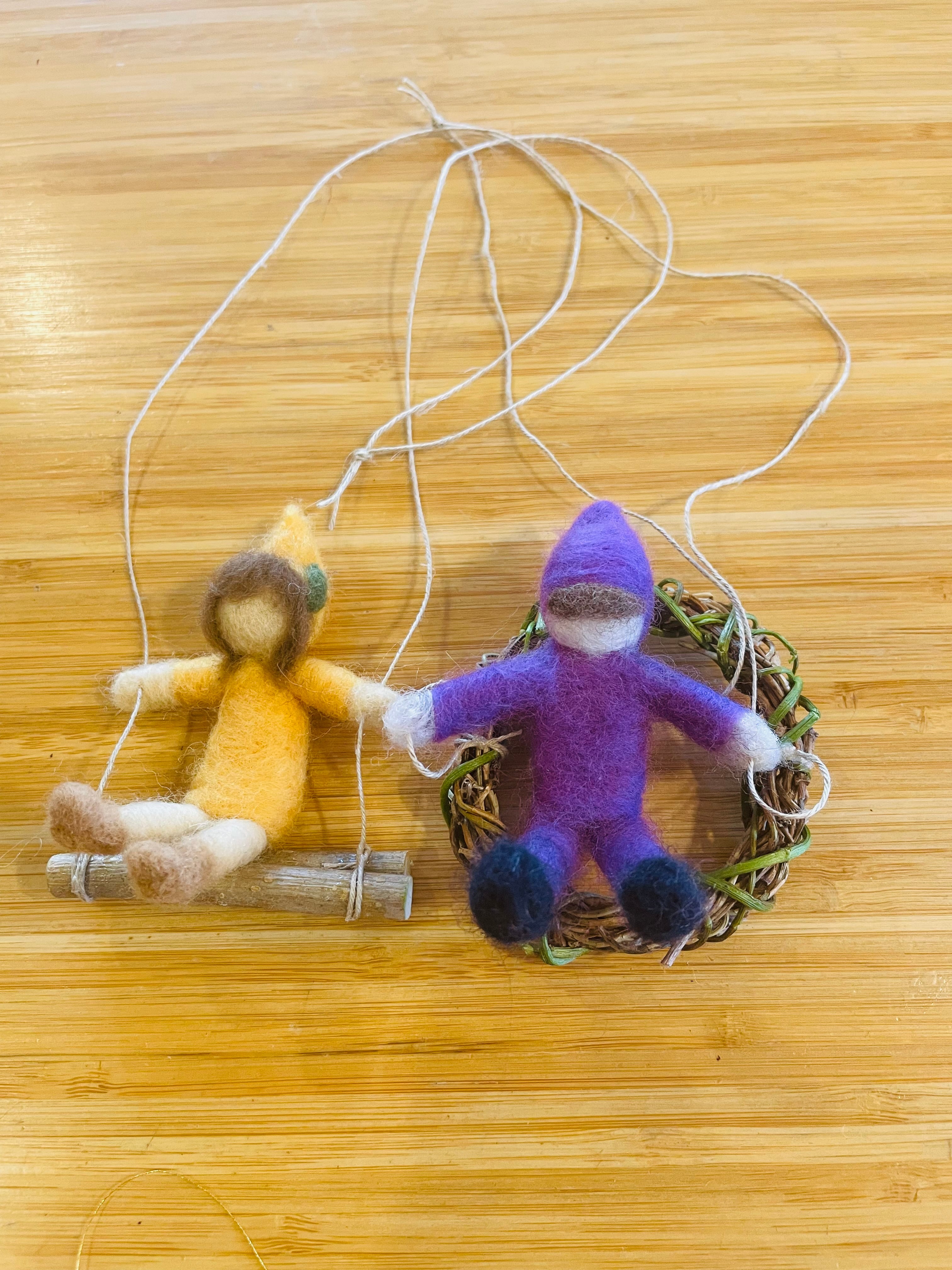 羊毛の飾り(ブランコのこどもと鳥)