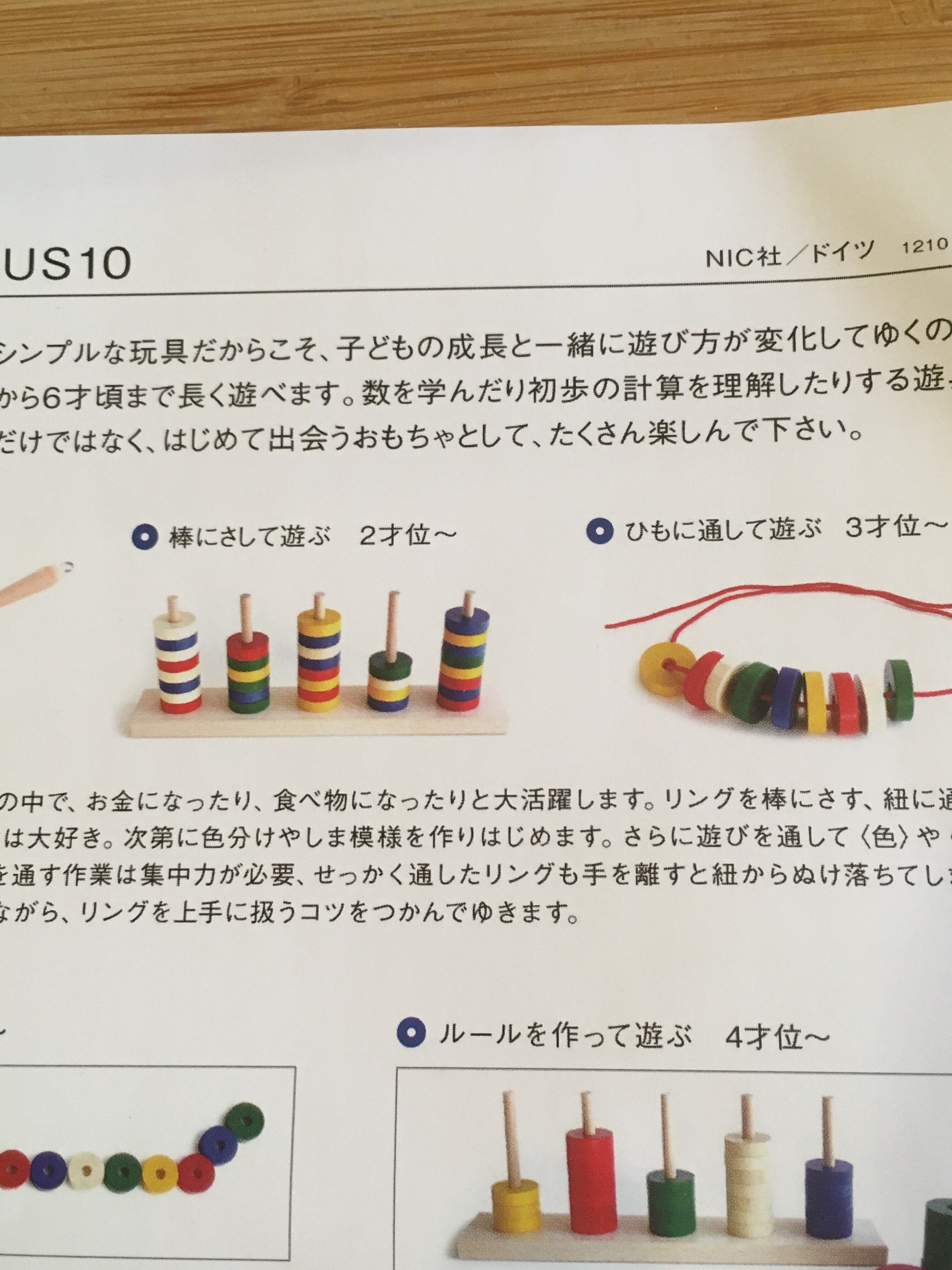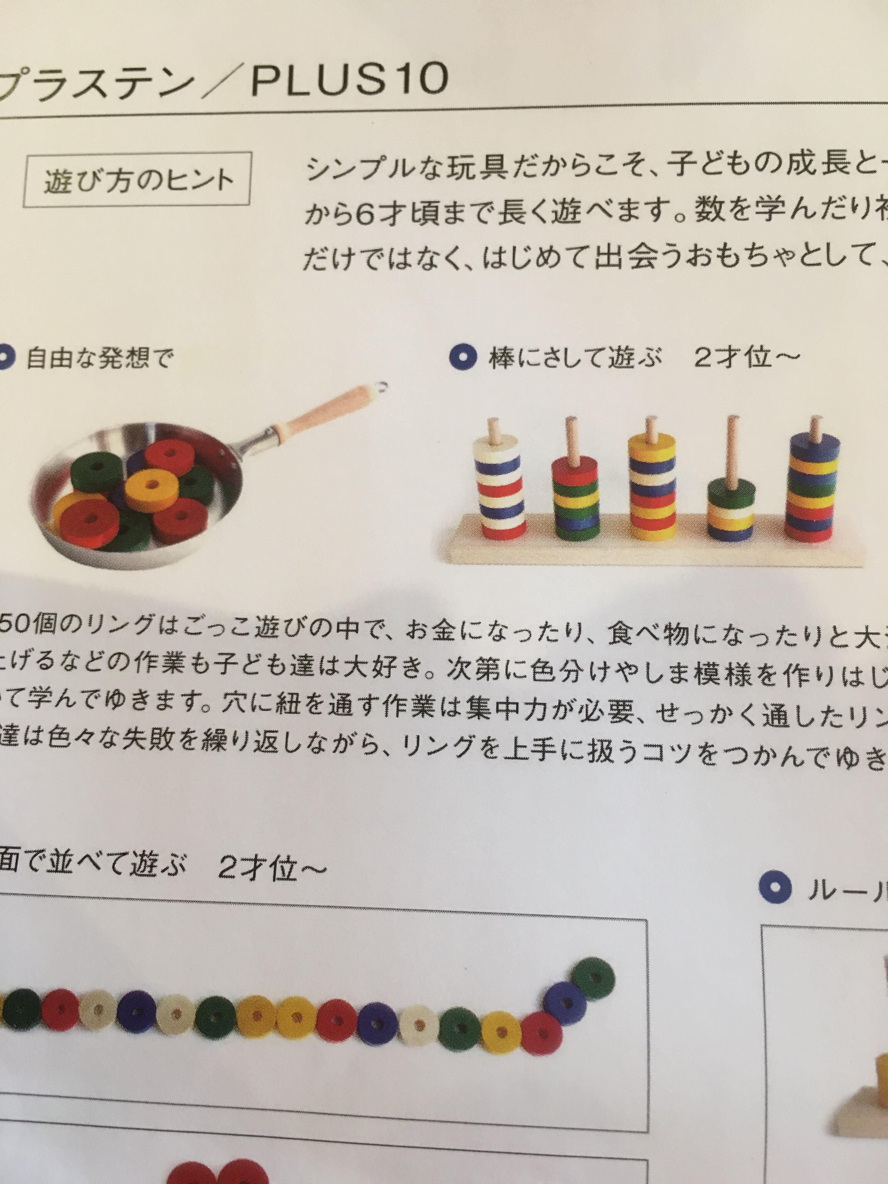 並べたり、棒通しをしたり、紐に通したり、おままごとの食材にしたり、模様を作ってみたり‥。