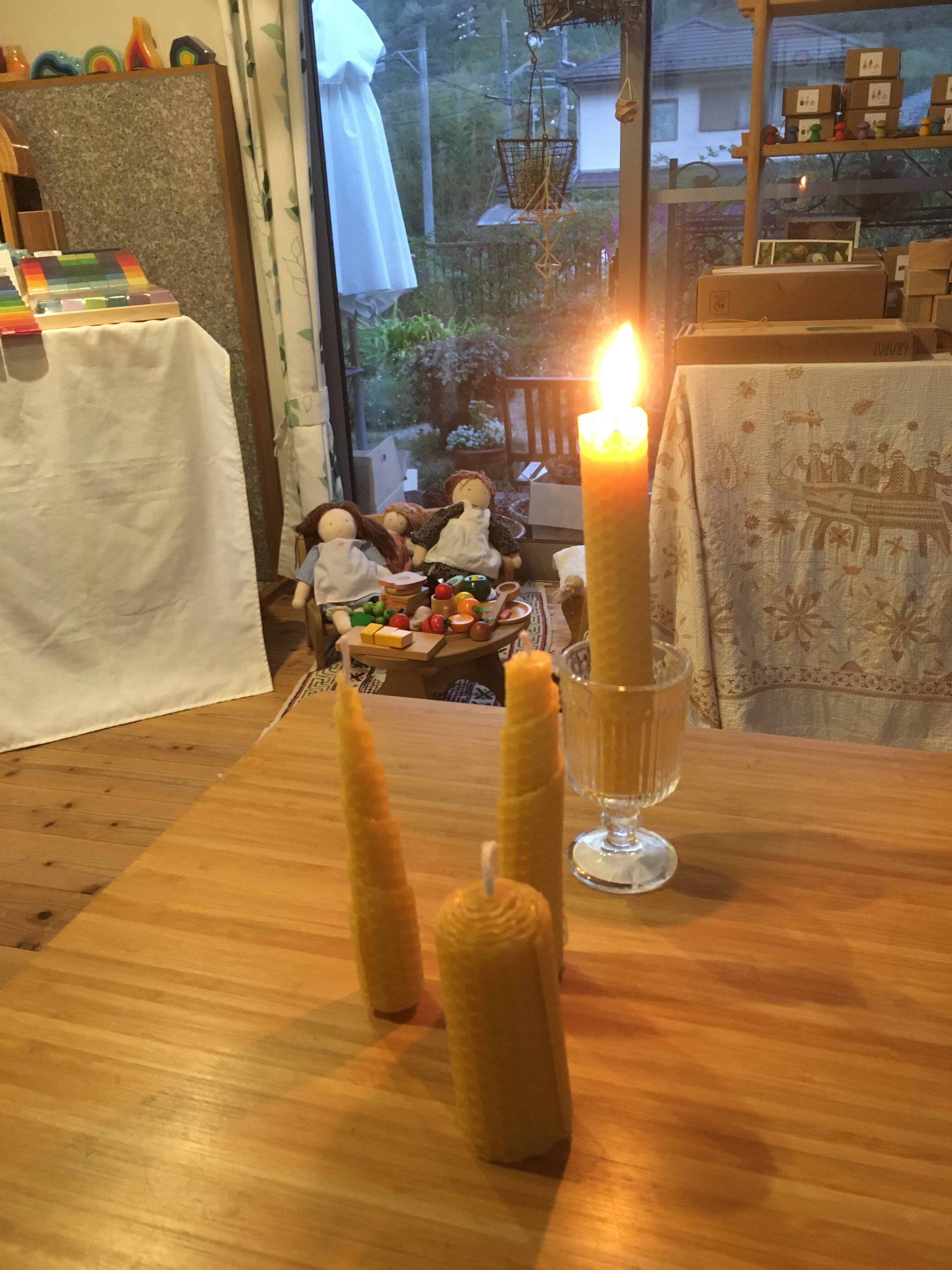 キャンドル芯にシートをくるくる巻いてみつろうキャンドルを作って灯しませんか?