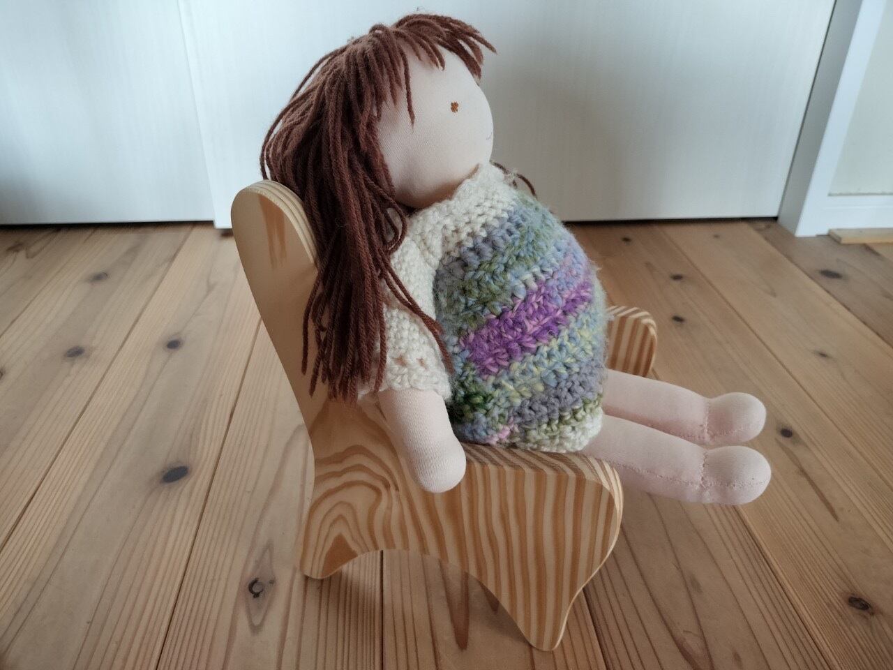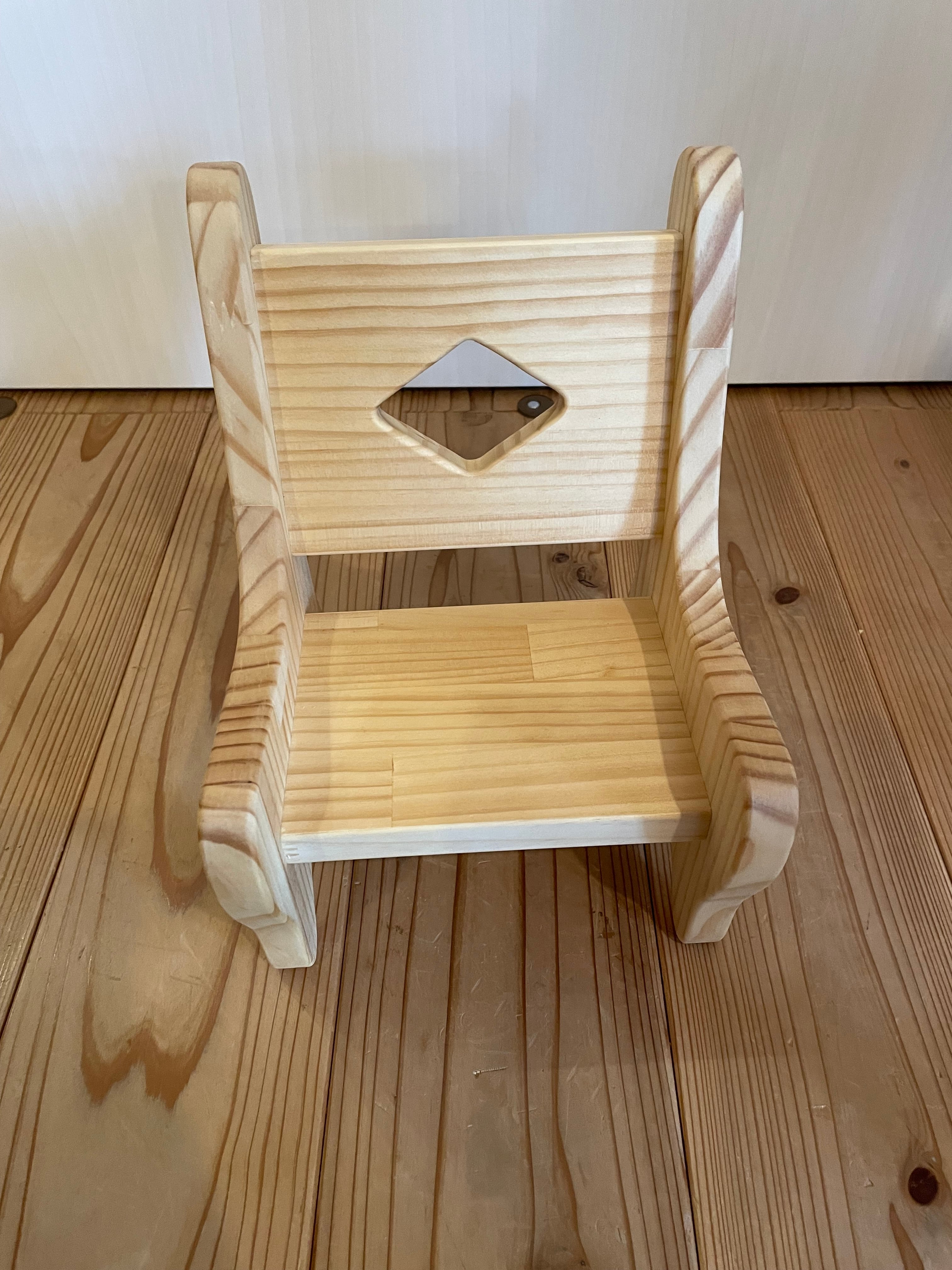 パインの集積材で作られた人形用イスです。