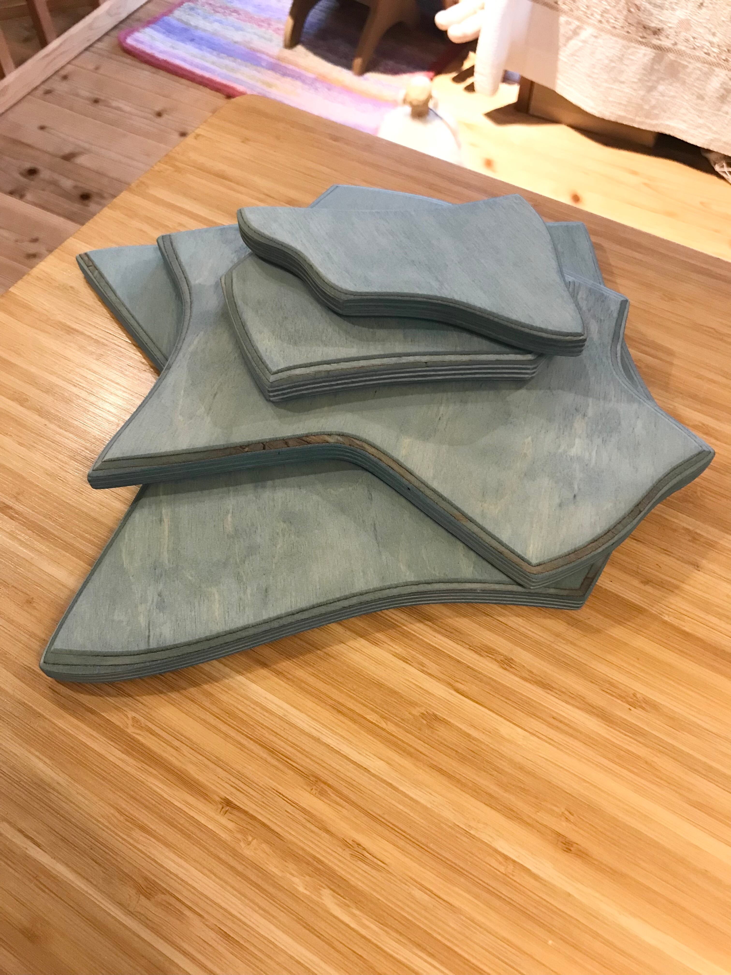 子どもたちが,手で持つための最小限の面取り,シンプルな形、優しい色は、想像力を刺激して、遊びの世界を広げてくれます。