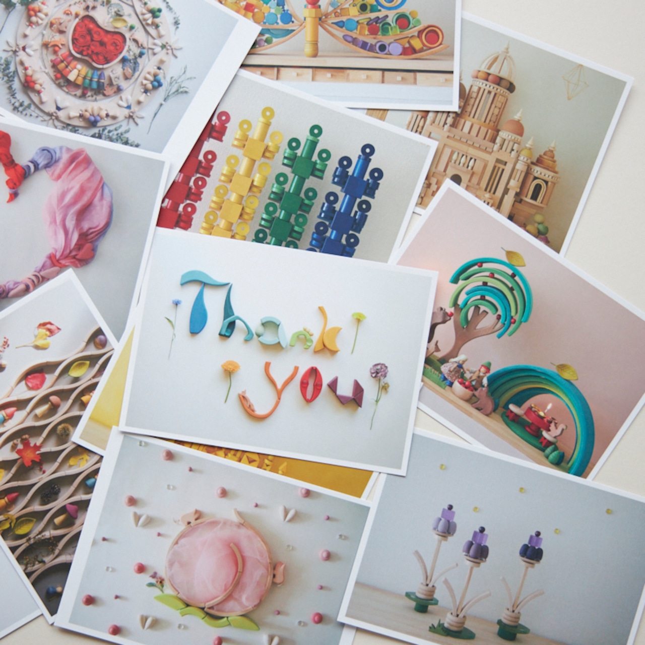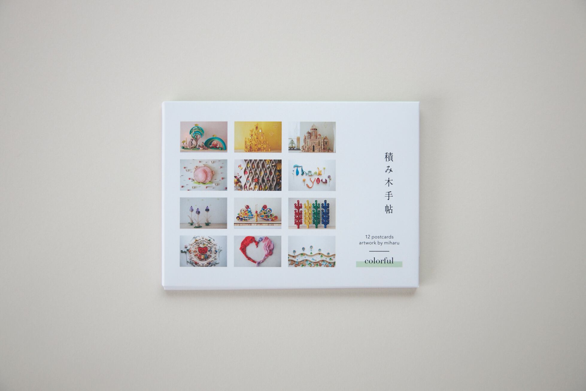 積み木アーティスト miharu さん の積み木あそびが、新しいポストカード 12 枚セットになりました。
