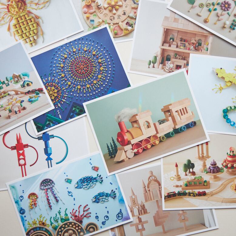 お子さんたちとの積み木遊びのヒントに、イメージを膨らませるアイテムの一つとして、ご家庭にあると楽しいと思います。