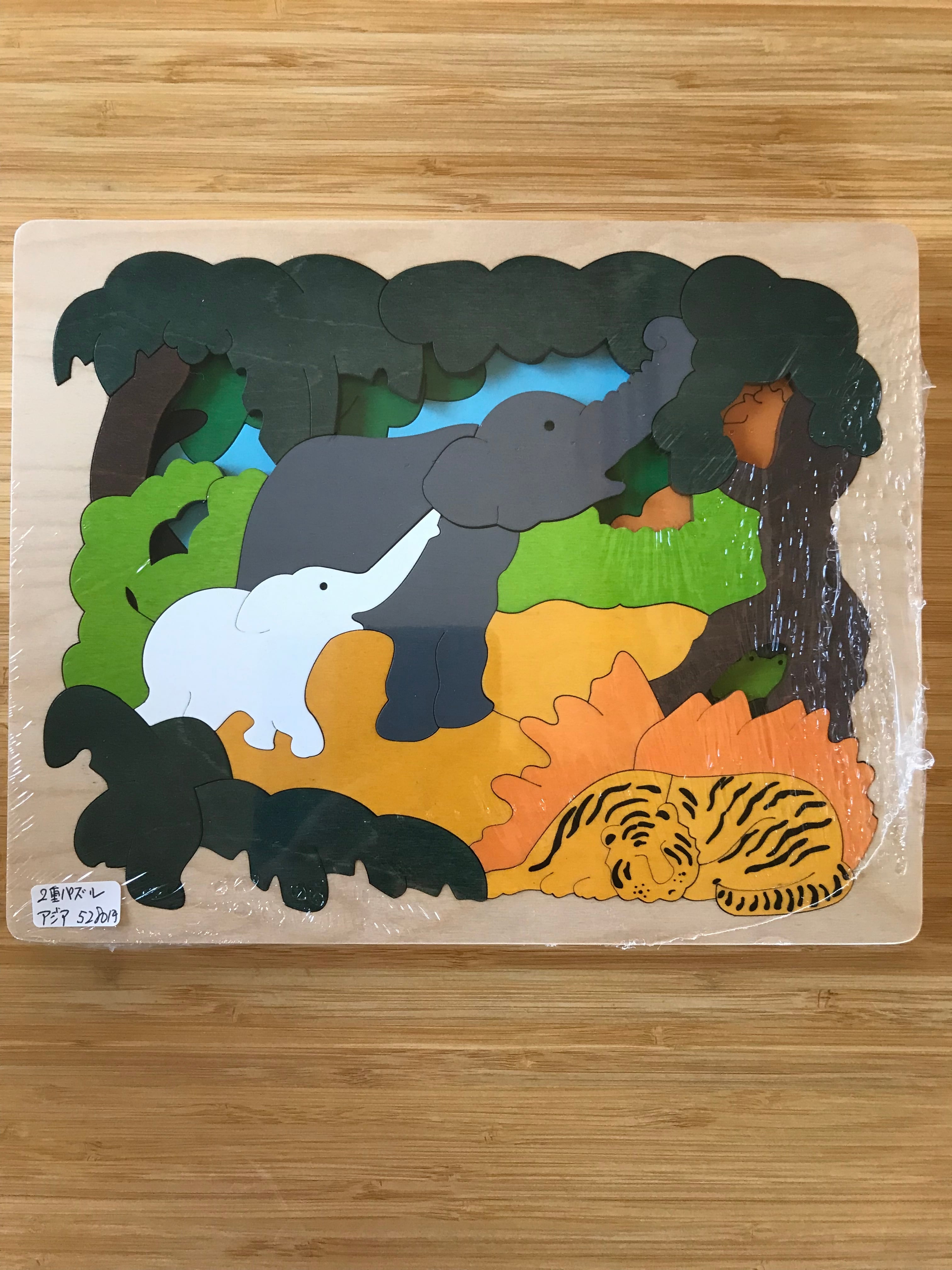 ヒョウにトラ。ゾウ、ヘビ、サル…アジアの森林をモチーフにした迫力満点のパズルです。