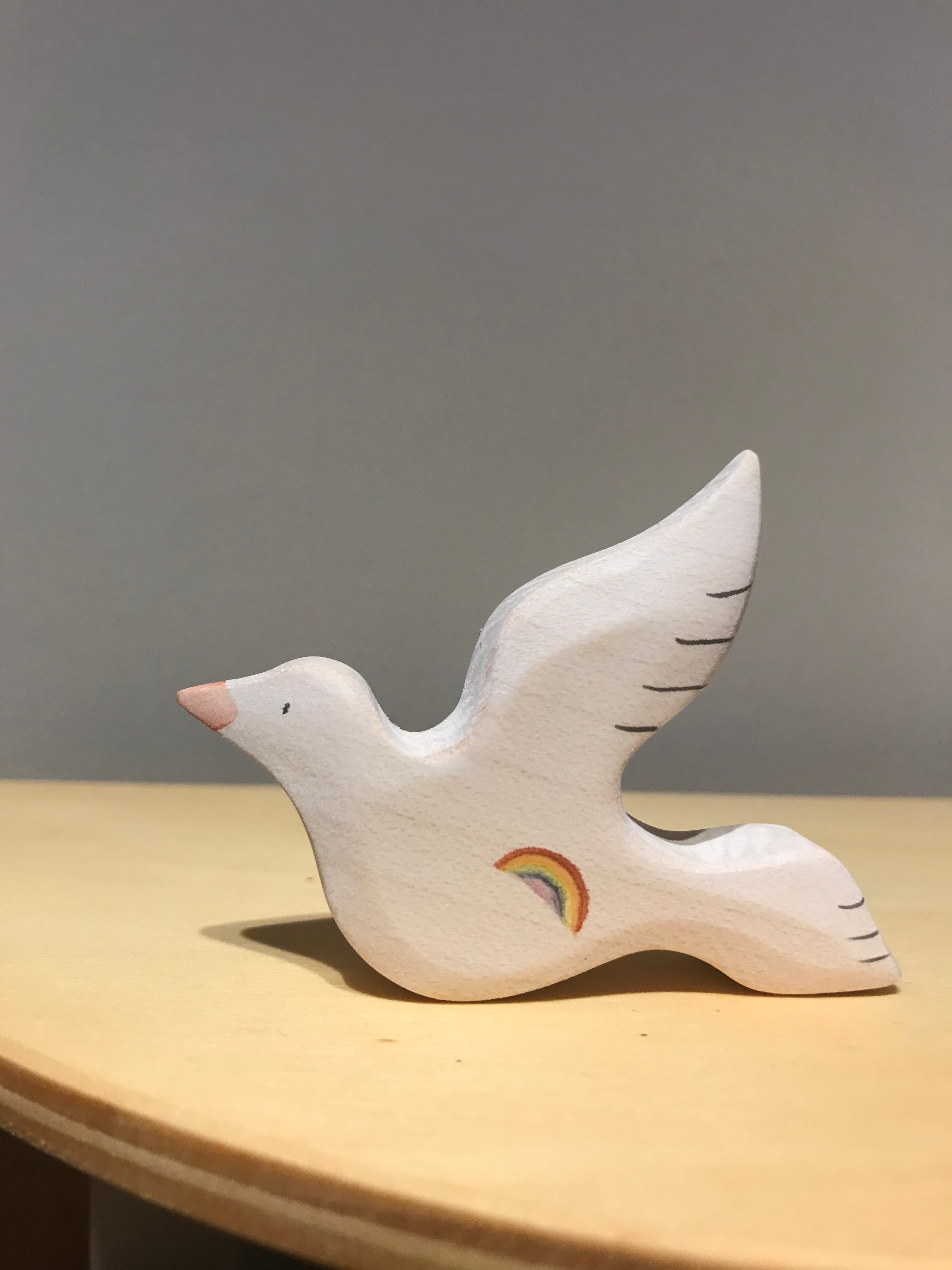虹はさまざまなものを象徴するが、私たちの多くは希望、愛、喜びを思い浮かべる。特にCovid-19の流行を通して、虹は希望と感謝の象徴となった。私たちはこの特別仕様の虹の鳩をデザインし、これらの感情を表現するとともに、虹が戻ってくるのを楽しみに待つように、これが過ぎ去ることを私たちに思い出させる。