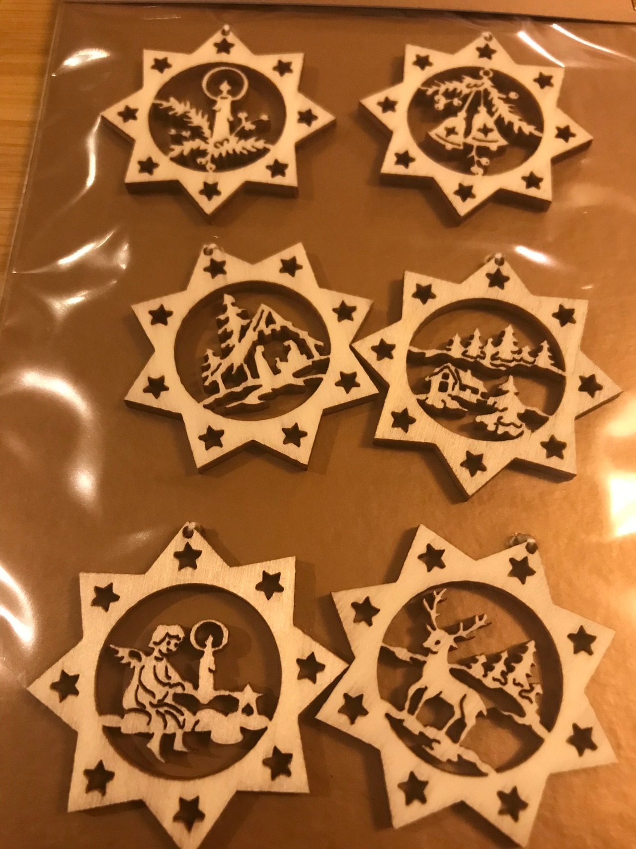 ドイツ ヴァルトファブリック社の木のオーナメント6点セットです。