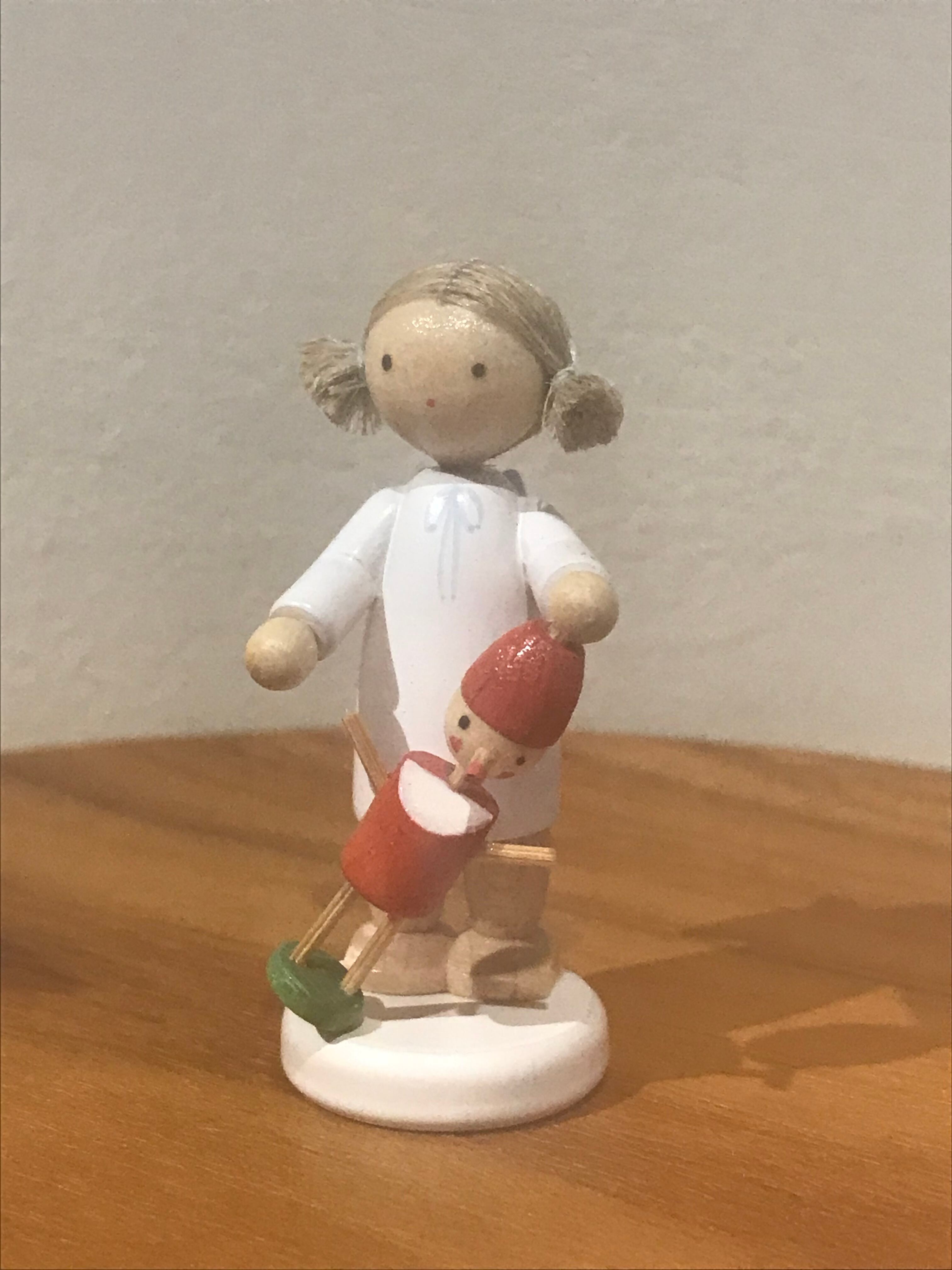 髪の毛は、亜麻の繊維を縫い束ね、美しい塗装が魅力の小さなお人形です。