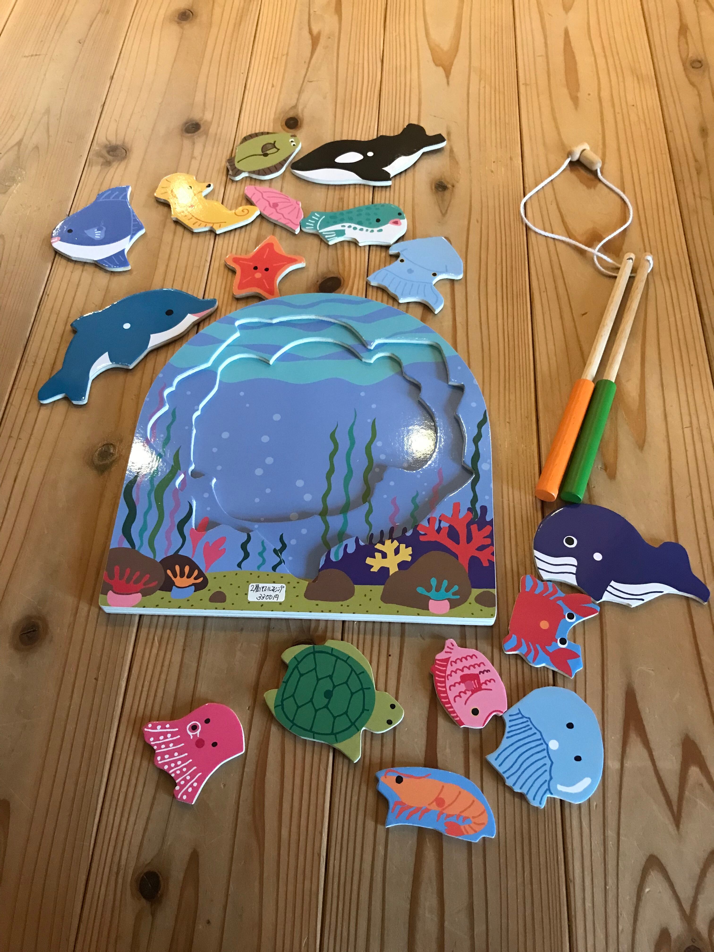 16種類の海の生き物を釣って遊べる2層構造のフィッシングパズルです。