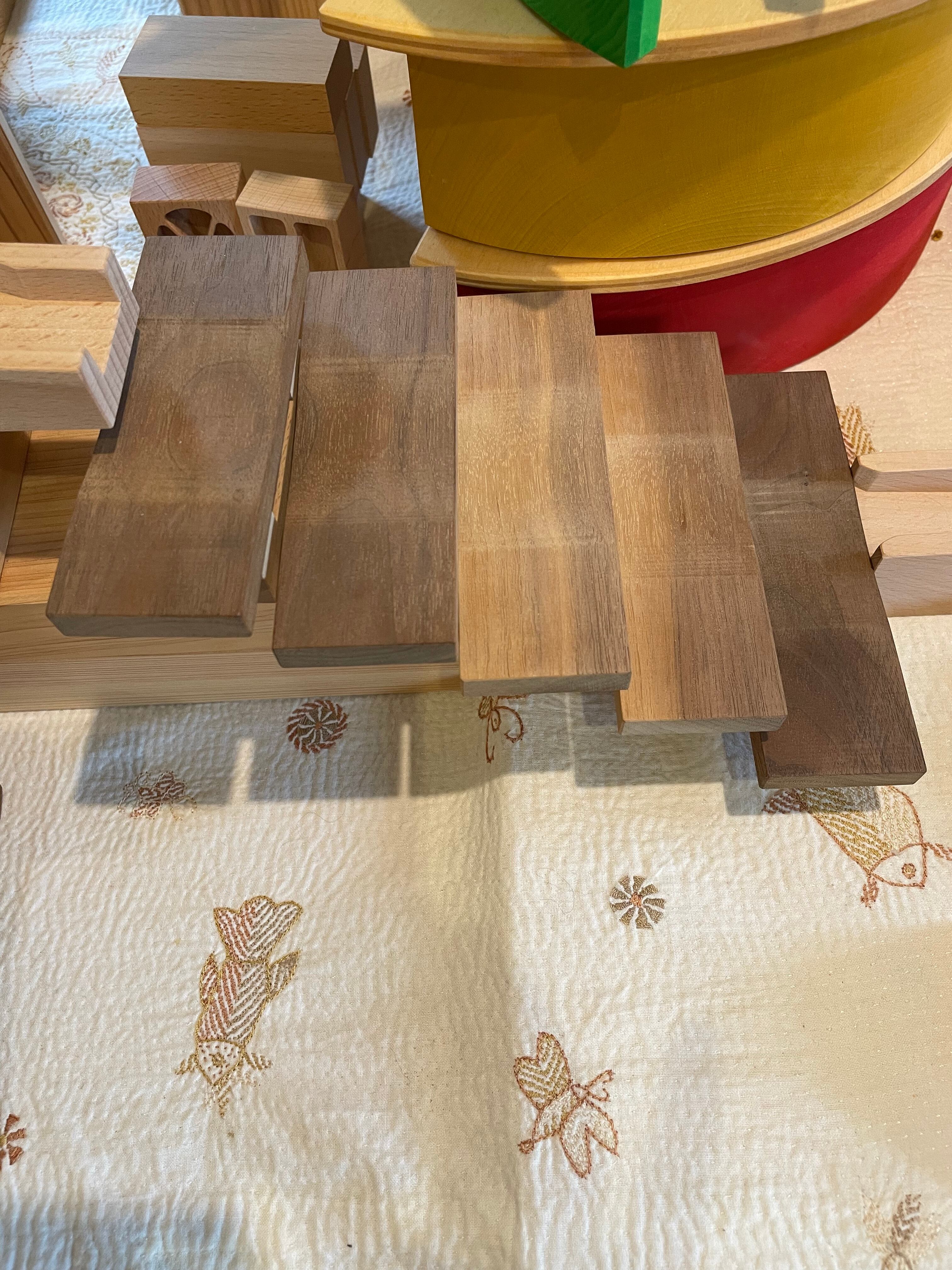 お手持ちの積み木やレールと合わせてオリジナルの玉の道を作って楽しんでくださいね。