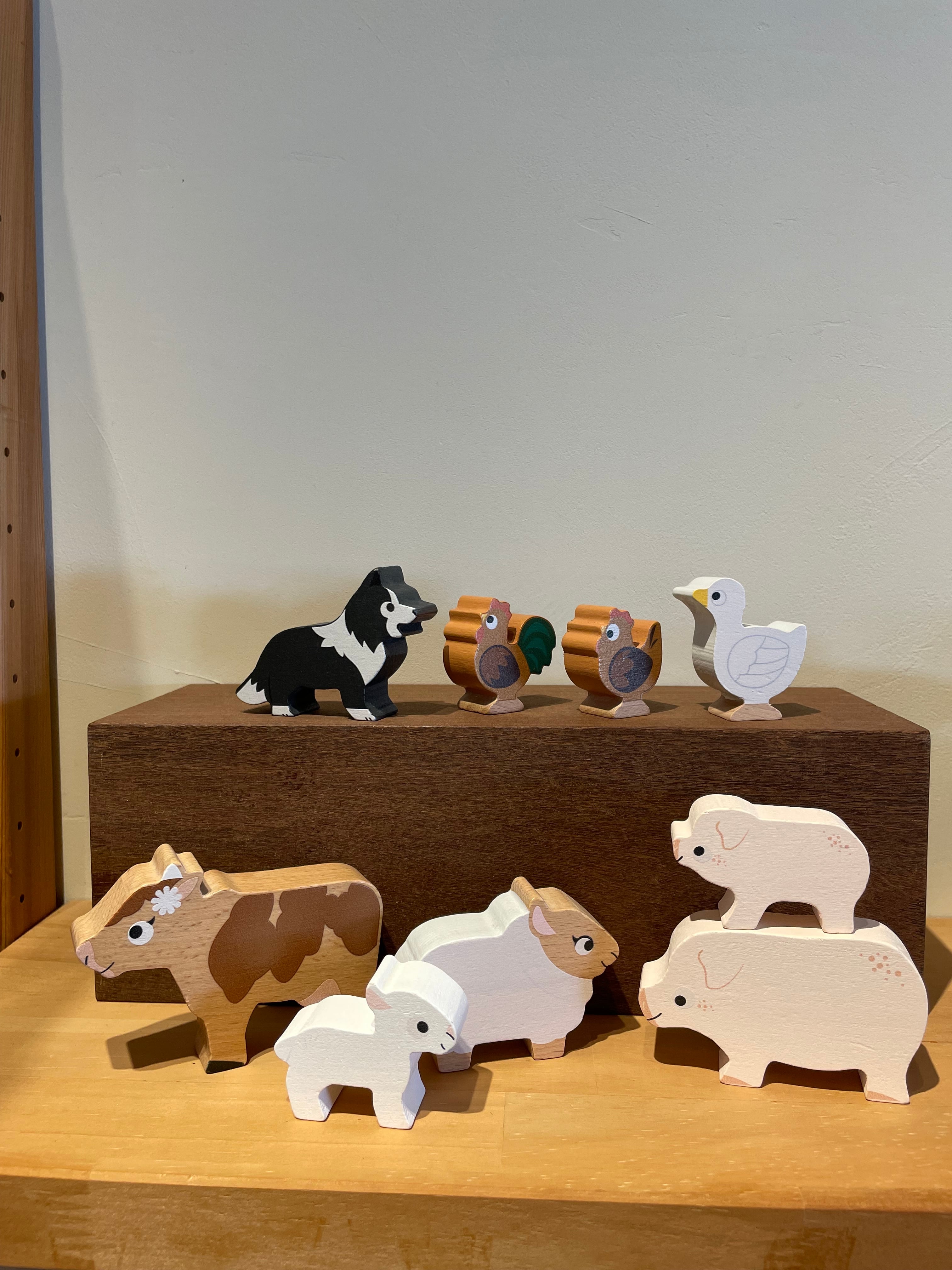 積み木やレール列車などと合わせてオリジナルの世界を作ったり、積んだり、並べたり、袋の中に手を入れて手探りで何の動物か当てたり、物語を作ったり…