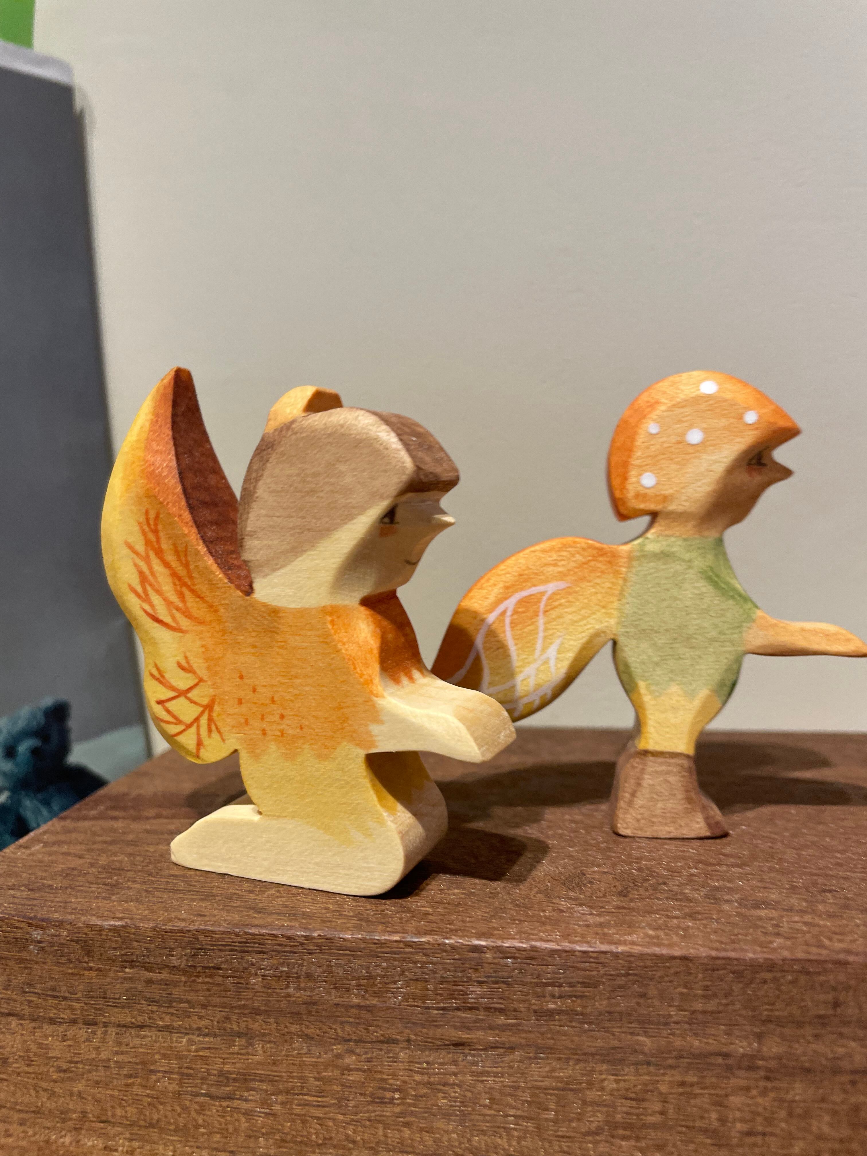 毎朝、日が昇るとオークリーは枝から枝へと飛び回り、ニョキニョキと伸びた幹に秘密をささやく。オークリーの笑い声が葉を揺らし、調和を促すと言われている。嵐が吹き荒れると、オークリーは木々を守る呪文を紡ぎ出す。そして月夜の晩、オークリーは根の間で踊り、その強さと寿命を保証する。