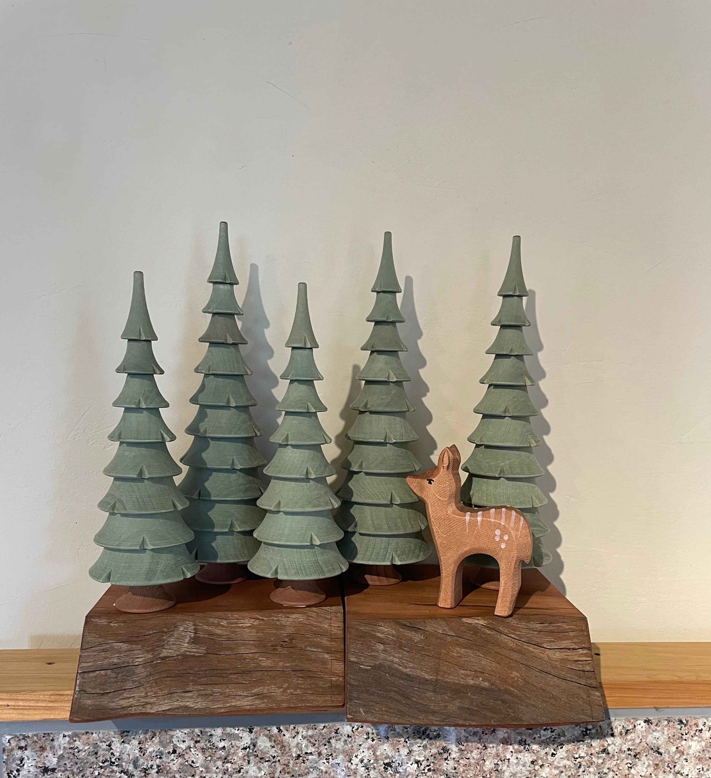 落ち着いたモスグリーンのもみの木です。雪をかぶっているようにもイメージできます。
