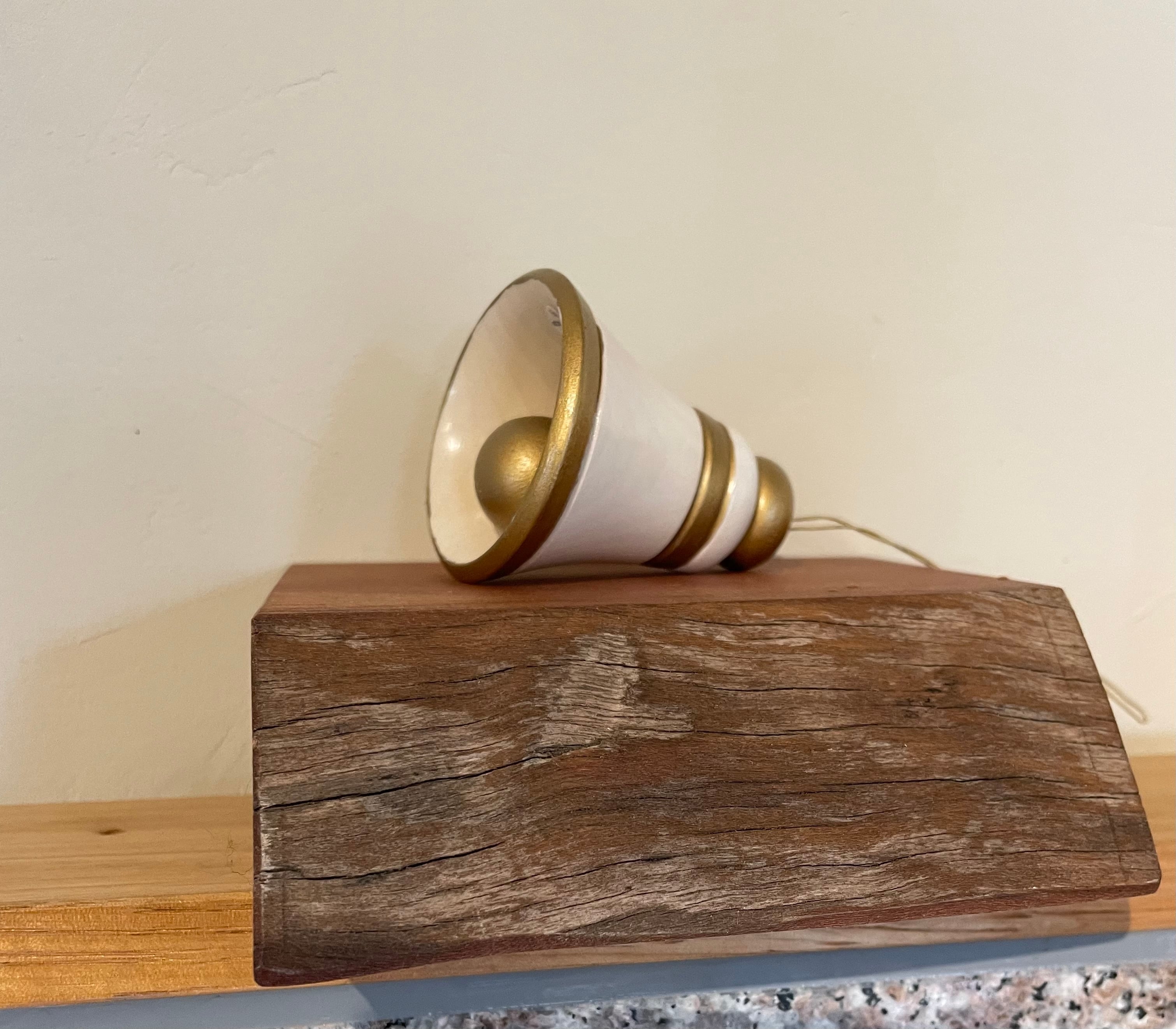 鐘の中には大きな金色の玉があって、振るとカラコロと優しい音がします。