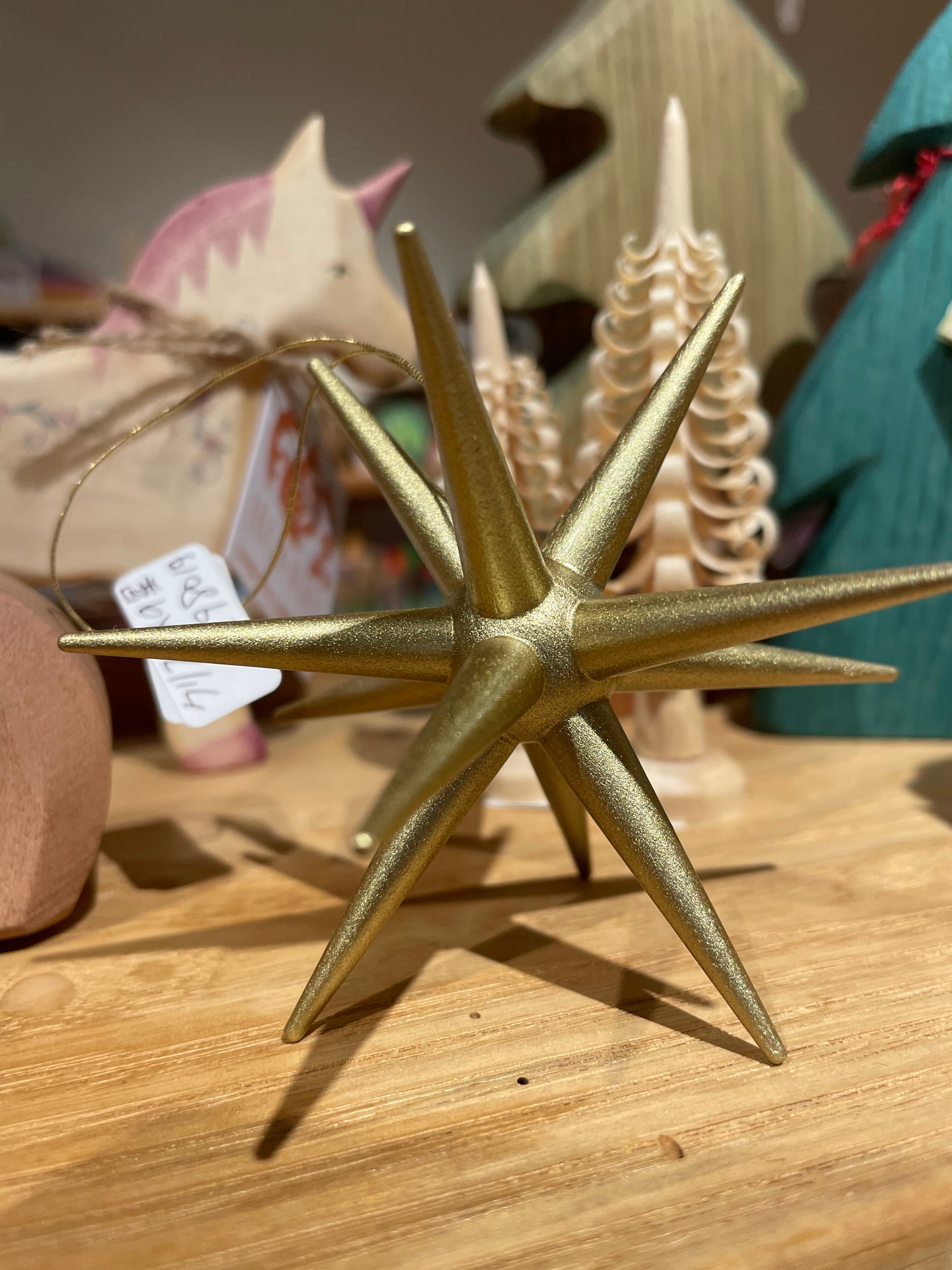 12本のとげとげ、ゴールドに美しく着色された上品なクリスマスオーナメントです。