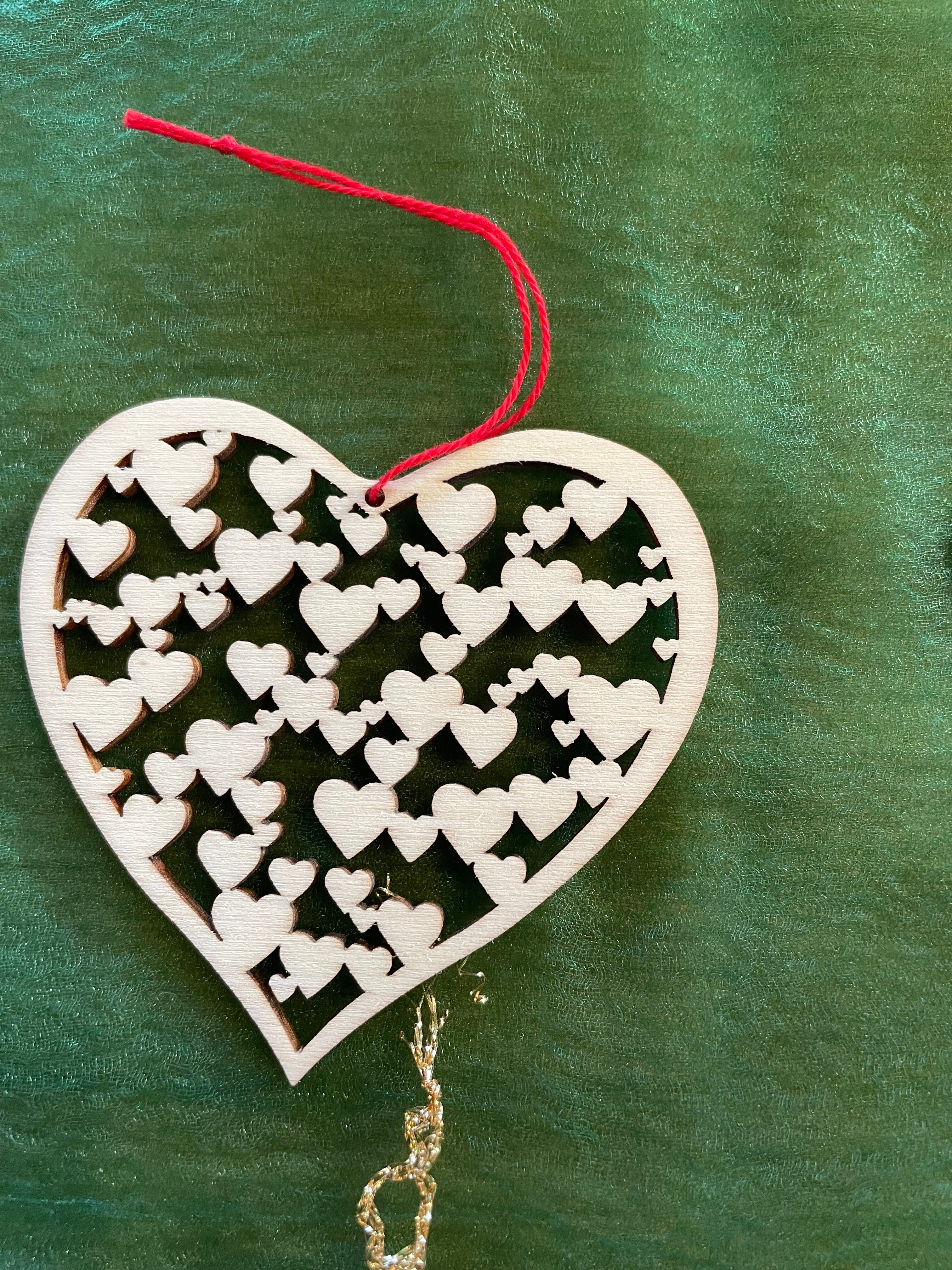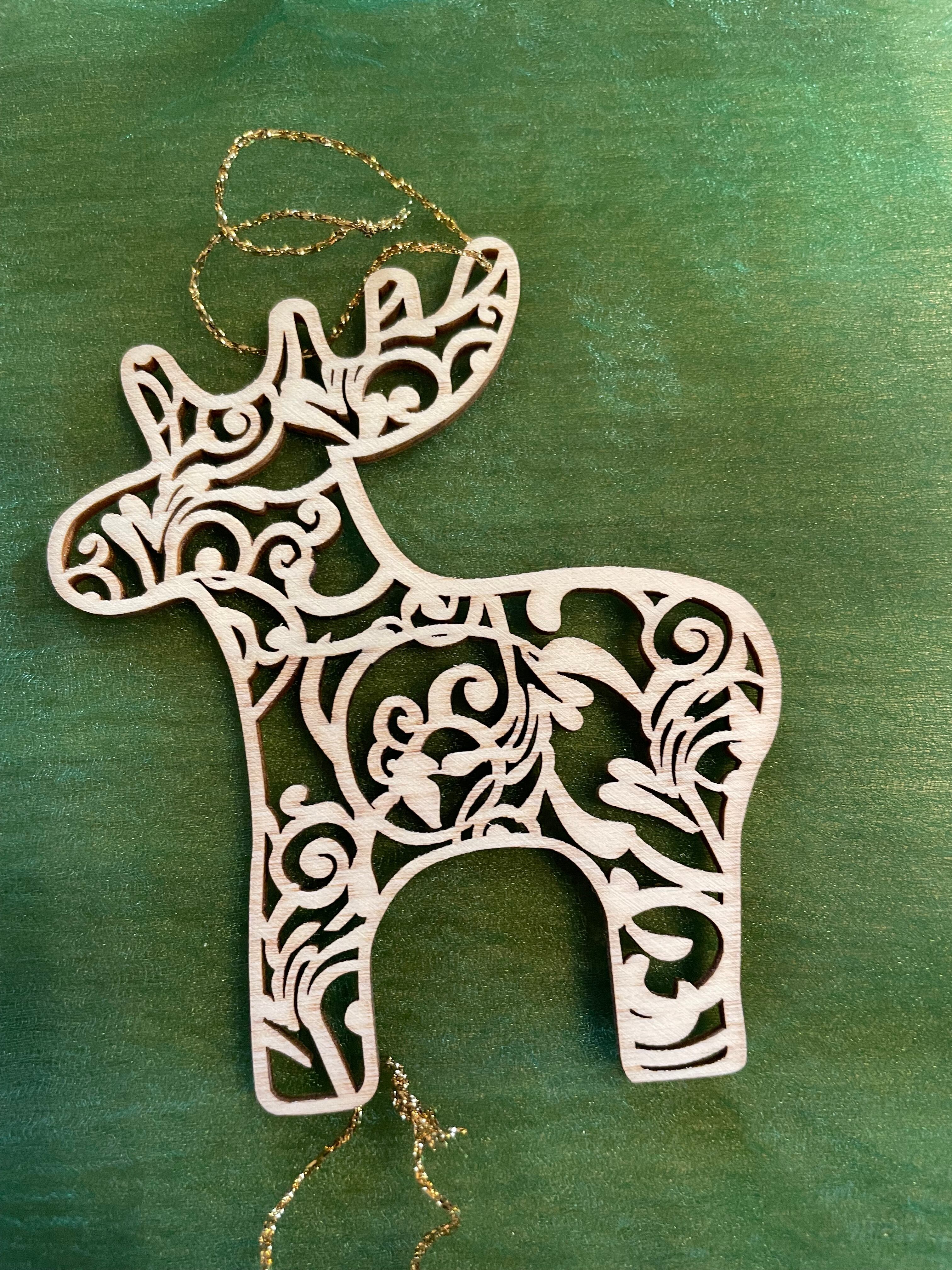 レザー加工で繊細なラインが施された美しいクリスマスオーナメントです。
