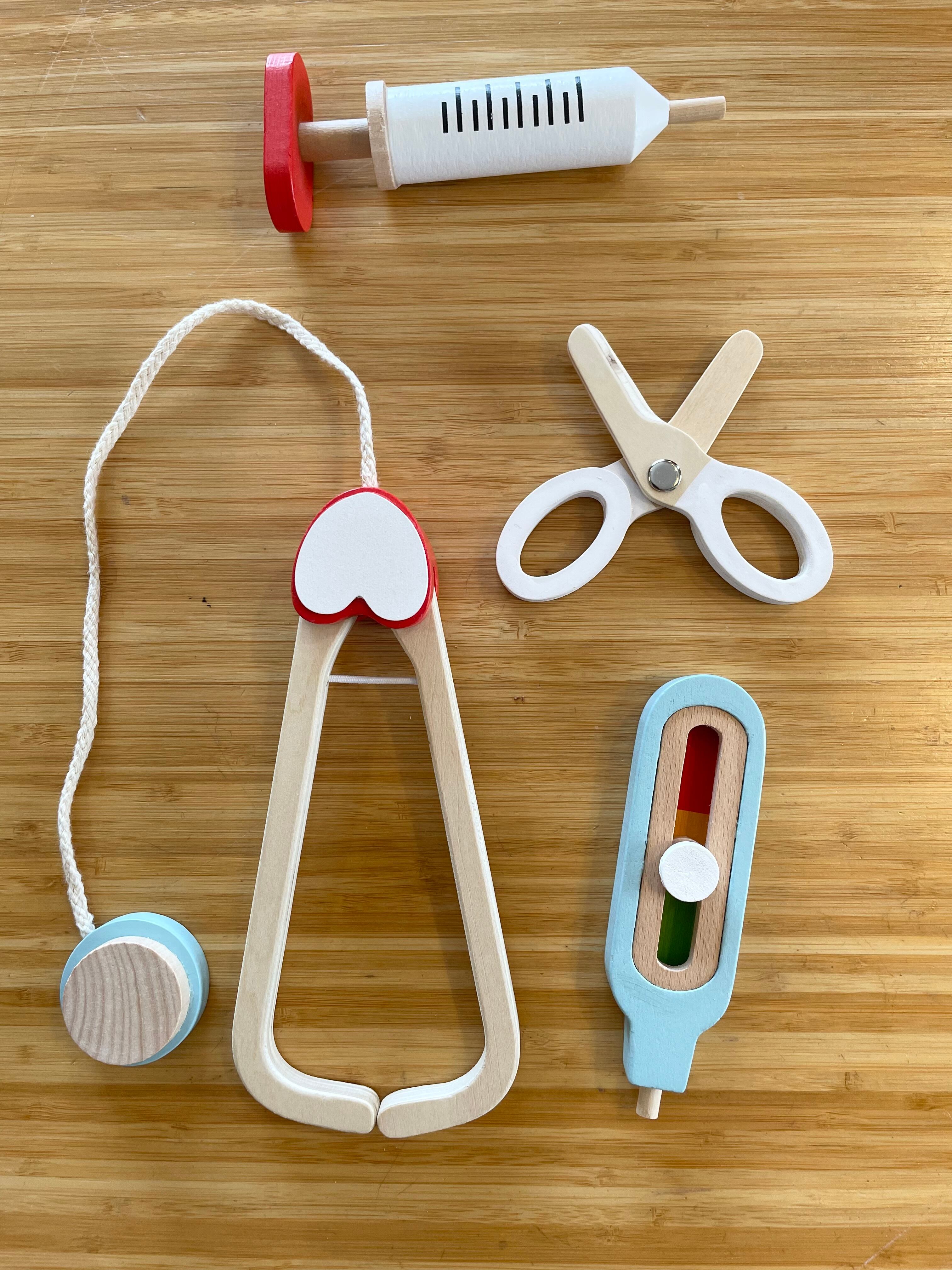 聴診器、血圧計、注射器、体温計、リペアークリーム、ハニーシロップ、ハサミ、スコープ、