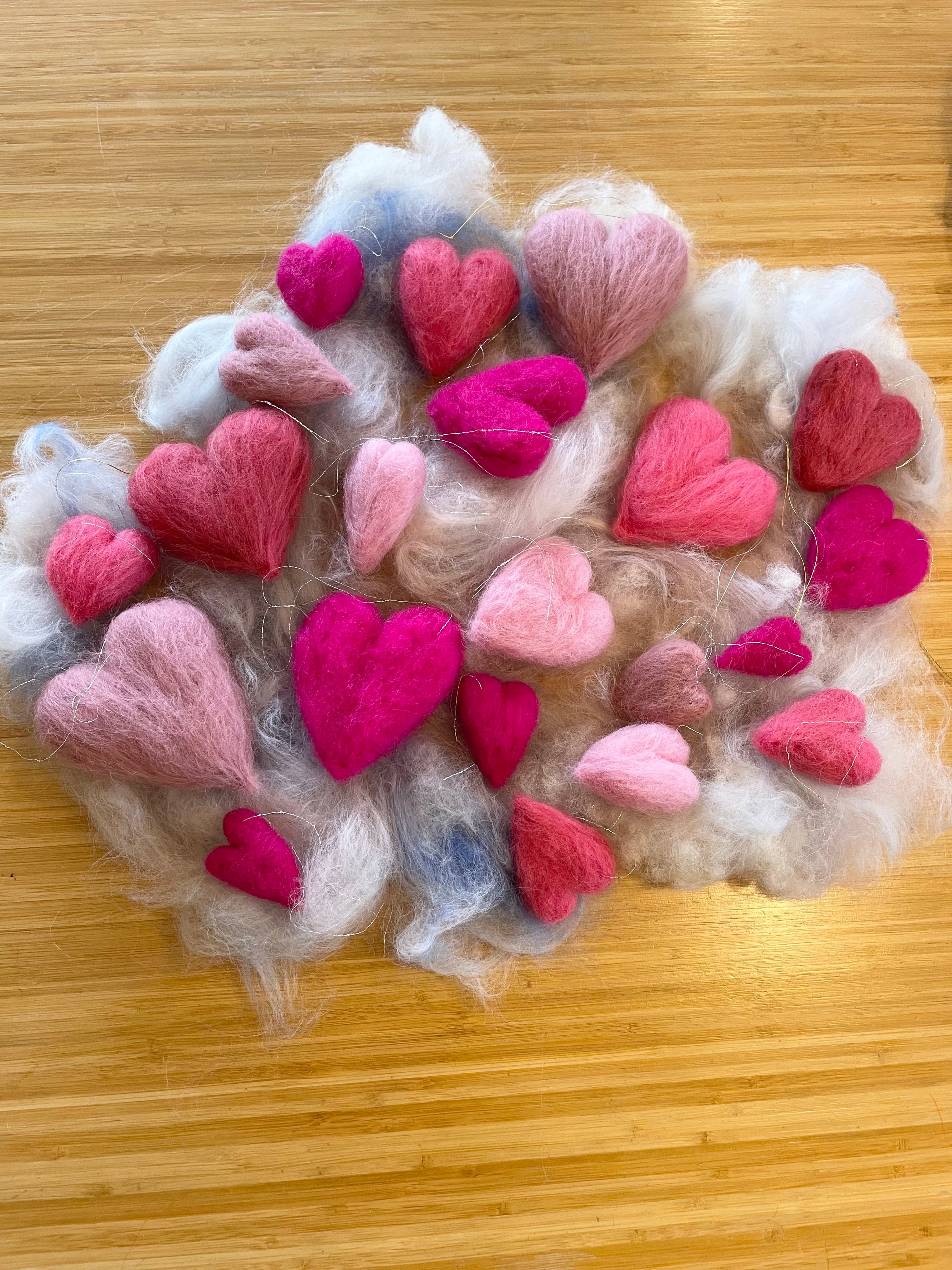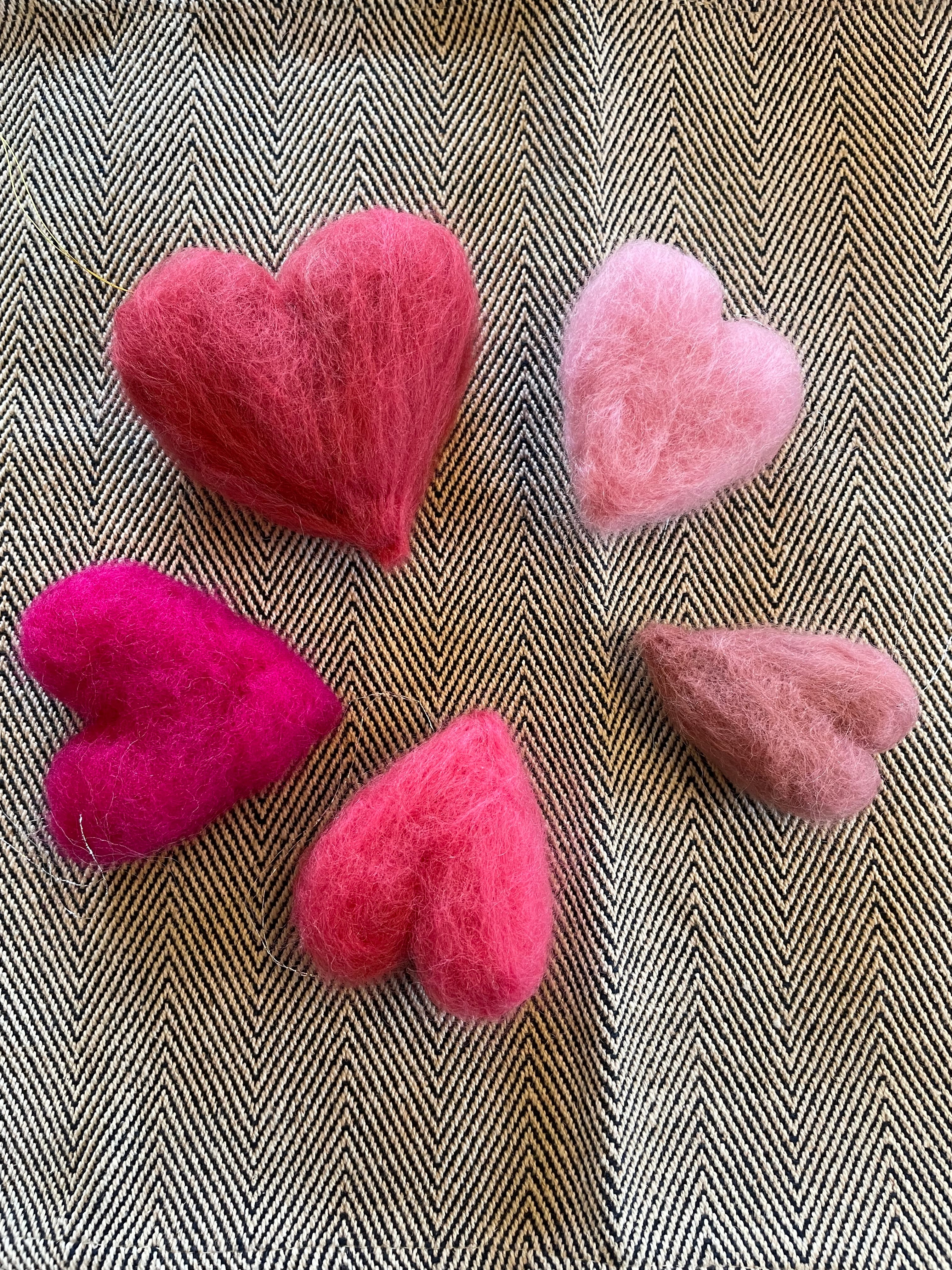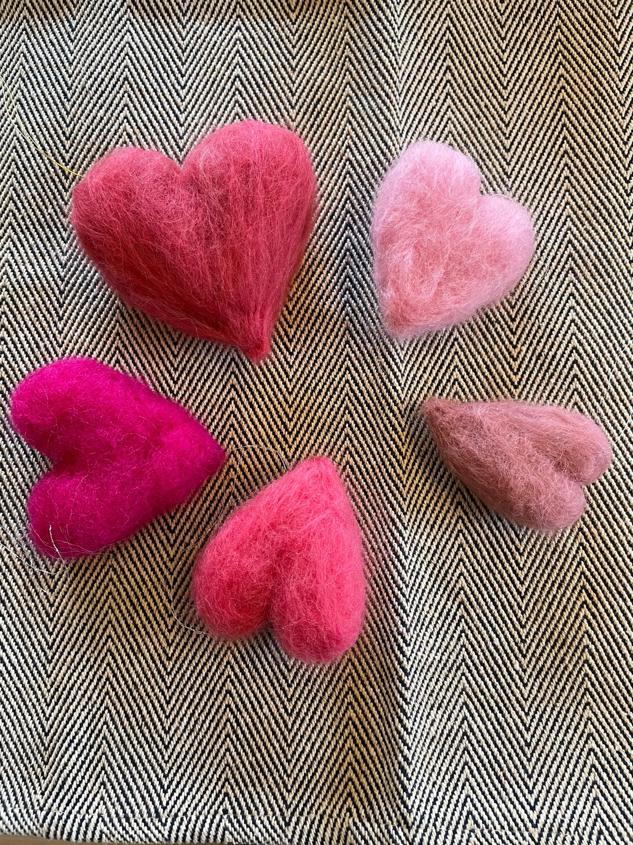 色味の違うピンクの羊毛をチクチク形を整え作りました。