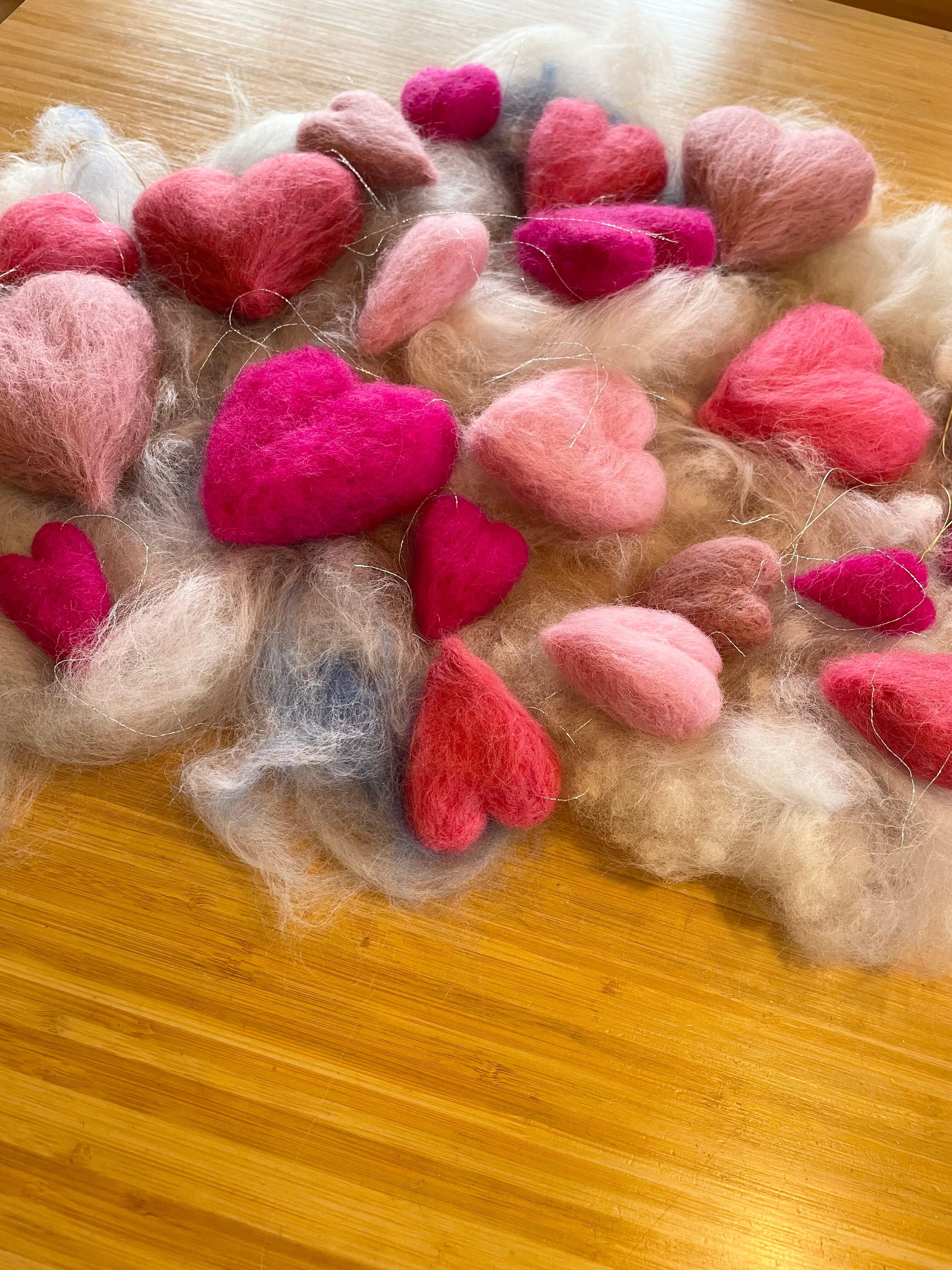 色味の違うピンクの羊毛をチクチク形を整え作りました。