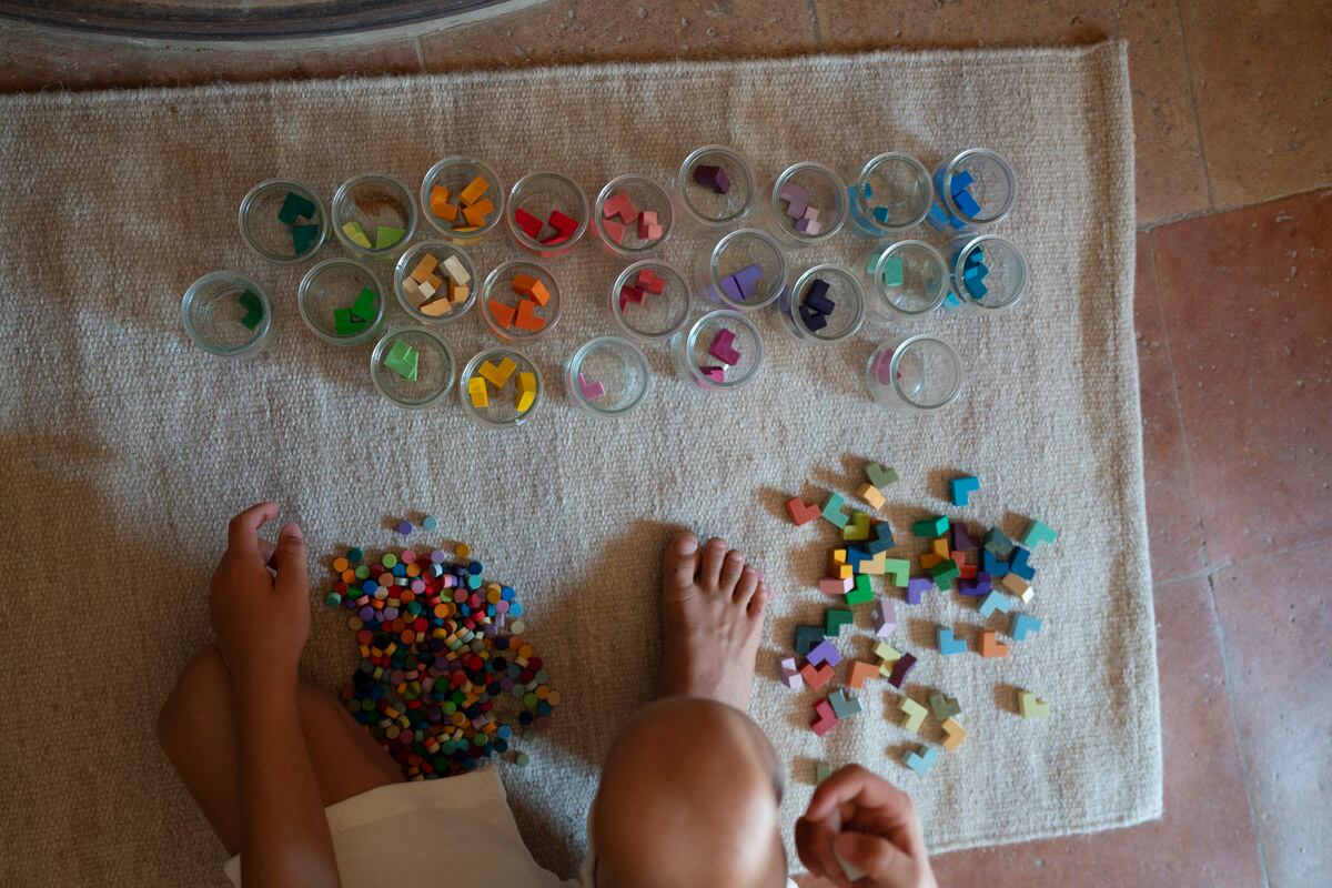 2つを組み合わせると直方体になるくの字型のパーツと小さいおはじきのようなパーツが